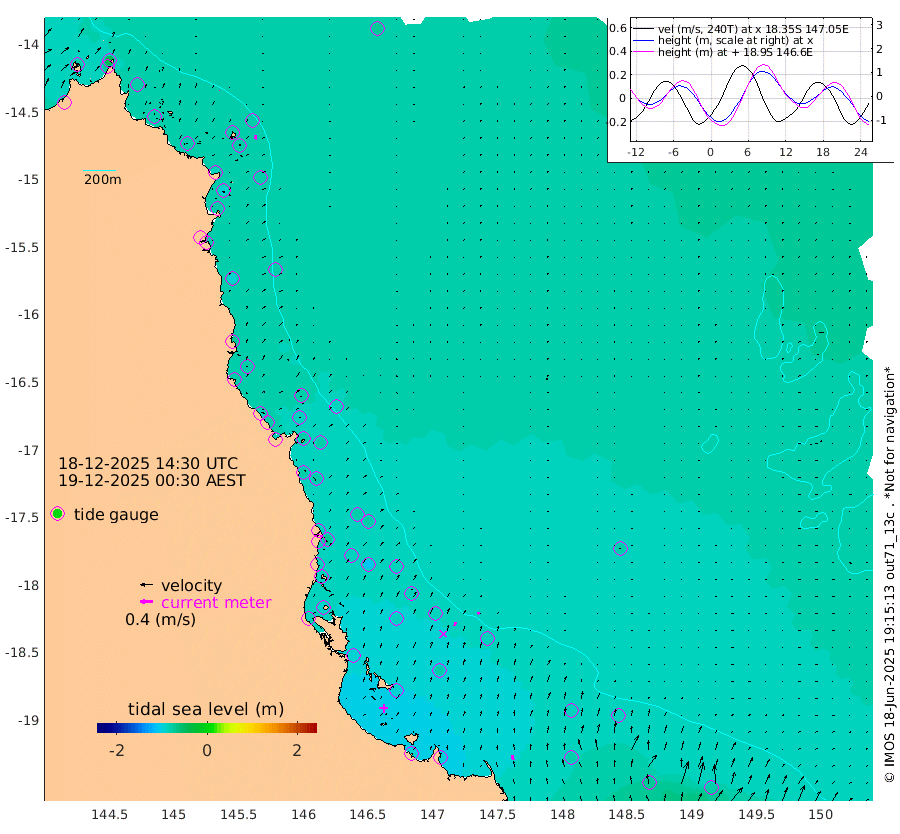 1cm/s 105T +11cm/s rms + 4cm/s -61T. GBRLSL 354m 13cm/s 8T +15cm/s rms + 2cm/s -84T. GBRLSH 32m 12cm/s 15T +15cm/s rms + 5cm/s -155T. GBRPPS 72m 6cm/s 29T +17cm/s rms + 13cm/s 115T. GBRMYR 223m 16cm/s -15T +18cm/s rms + 0cm/s -9T. NRSYON 29m -73cm Osprey Reef - West -77cm Stanley Island -40cm Pipon Islands -70cm Cape Melville -79cm Munro Reef -75cm Leggatt Island -75cm Normanby River -78cm Carter Reef -79cm Lizard Island (QLD) -82cm East Petherbridge Island -79cm North Direction Island -84cm Cape Flattery -81cm Ribbon Reef No.9 -94cm Low Wooded Island -78cm Cape Bedford -49cm Endeavour River North -81cm Cooktown -82cm Cruiser Passage -92cm East Hope Island -74cm Bailay Creek -79cm Low Islets -82cm Port Douglas -85cm Palm Cove -79cm Yorkeys Knob -76cm Michaelmas Cay -85cm Euston Reef -84cm Cairns -84cm Green Island -77cm Fitzroy Island -81cm Sudbury Cay -80cm High Island -79cm Russell Island -81cm Peart Reef -76cm Nathan Reef -83cm Mourilyan Harbour -86cm Cowley Beach -70cm North Barnard Island -87cm Eddy Reef -109cm Beaver Reef -84cm Unnamed Reef No. 1 -82cm Flinders Reef -87cm Clump Point -86cm Dunk Island -84cm Barnett Patches -91cm Goold Island -89cm Cardwell -90cm Britomart Reef -84cm Pith Reef -86cm Dip Reef -90cm Lucinda (Offshore) -82cm John Brewer Reef -95cm Albino Rock -90cm Shrimp Reef -84cm Jaguar Reef -95cm Townsville -92cm Cape Ferguson -78cm Stanley Reef -70cm Wallaby Reef -79cm Kennedy Reef