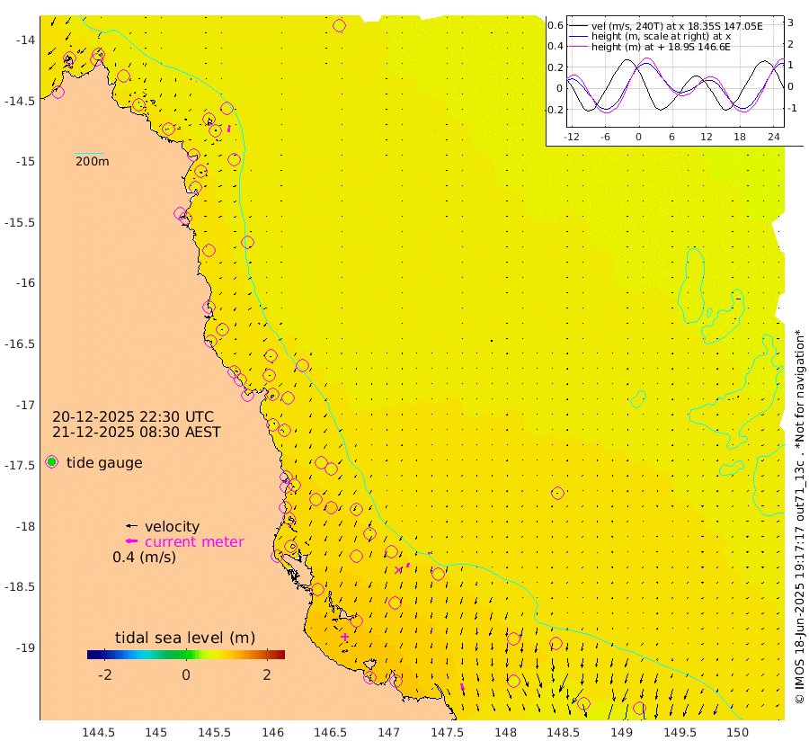 1cm/s -89T +11cm/s rms + 4cm/s -61T. GBRLSL 354m 22cm/s -171T +15cm/s rms + 2cm/s -84T. GBRLSH 32m 14cm/s -159T +15cm/s rms + 5cm/s -155T. GBRPPS 72m 7cm/s -146T +17cm/s rms + 13cm/s 115T. GBRMYR 223m 23cm/s 164T +18cm/s rms + 0cm/s -9T. NRSYON 29m 67cm Osprey Reef - West 76cm Stanley Island 48cm Pipon Islands 68cm Cape Melville 75cm Munro Reef 73cm Leggatt Island 78cm Normanby River 78cm Carter Reef 73cm Lizard Island (QLD) 74cm East Petherbridge Island 71cm North Direction Island 83cm Cape Flattery 75cm Ribbon Reef No.9 78cm Low Wooded Island 69cm Cape Bedford 38cm Endeavour River North 76cm Cooktown 74cm Cruiser Passage 88cm East Hope Island 64cm Bailay Creek 71cm Low Islets 79cm Port Douglas 80cm Palm Cove 75cm Yorkeys Knob 74cm Michaelmas Cay 84cm Euston Reef 80cm Cairns 82cm Green Island 87cm Fitzroy Island 82cm Sudbury Cay 74cm High Island 76cm Russell Island 77cm Peart Reef 73cm Nathan Reef 80cm Mourilyan Harbour 84cm Cowley Beach 71cm North Barnard Island 84cm Eddy Reef 104cm Beaver Reef 81cm Unnamed Reef No. 1 81cm Flinders Reef 85cm Clump Point 86cm Dunk Island 79cm Barnett Patches 89cm Goold Island 91cm Cardwell 88cm Britomart Reef 82cm Pith Reef 82cm Dip Reef 91cm Lucinda (Offshore) 83cm John Brewer Reef 98cm Albino Rock 88cm Shrimp Reef 85cm Jaguar Reef 97cm Townsville 94cm Cape Ferguson 73cm Stanley Reef 71cm Wallaby Reef 75cm Kennedy Reef