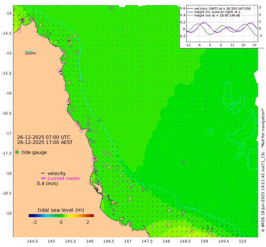 1cm/s -37T +11cm/s rms + 4cm/s -61T. GBRLSL 354m 9cm/s 25T +15cm/s rms + 2cm/s -84T. GBRLSH 32m 10cm/s 47T +15cm/s rms + 5cm/s -155T. GBRPPS 72m 5cm/s 43T +17cm/s rms + 13cm/s 115T. GBRMYR 223m 9cm/s 29T +18cm/s rms + 0cm/s -9T. NRSYON 29m 13cm Osprey Reef - West 27cm Stanley Island 16cm Pipon Islands 26cm Cape Melville 29cm Munro Reef 22cm Leggatt Island 25cm Normanby River 27cm Carter Reef 24cm Lizard Island (QLD) 32cm East Petherbridge Island 29cm North Direction Island 22cm Cape Flattery 19cm Ribbon Reef No.9 23cm Low Wooded Island 26cm Cape Bedford 7cm Endeavour River North 21cm Cooktown 18cm Cruiser Passage 23cm East Hope Island 34cm Bailay Creek 22cm Low Islets 20cm Port Douglas 17cm Palm Cove 17cm Yorkeys Knob 17cm Michaelmas Cay 15cm Euston Reef 21cm Cairns 13cm Green Island 12cm Fitzroy Island 16cm Sudbury Cay 14cm High Island 9cm Russell Island 17cm Peart Reef 16cm Nathan Reef 21cm Mourilyan Harbour 22cm Cowley Beach 26cm North Barnard Island 20cm Eddy Reef 28cm Beaver Reef 16cm Unnamed Reef No. 1 10cm Flinders Reef 20cm Clump Point 18cm Dunk Island 25cm Barnett Patches 20cm Goold Island 28cm Cardwell 17cm Britomart Reef 19cm Pith Reef 12cm Dip Reef 23cm Lucinda (Offshore) 23cm John Brewer Reef 21cm Albino Rock 26cm Shrimp Reef 16cm Jaguar Reef 23cm Townsville 22cm Cape Ferguson 36cm Stanley Reef 42cm Wallaby Reef 27cm Kennedy Reef