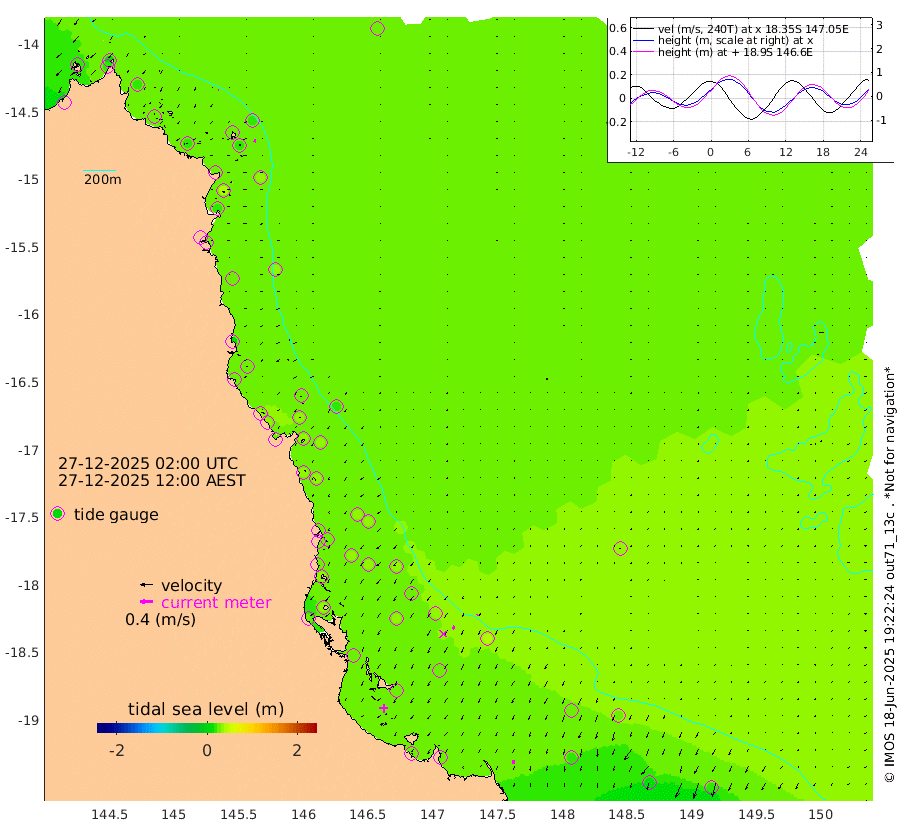3cm/s -83T +11cm/s rms + 4cm/s -61T. GBRLSL 354m 9cm/s -159T +15cm/s rms + 2cm/s -84T. GBRLSH 32m 10cm/s -146T +15cm/s rms + 5cm/s -155T. GBRPPS 72m 5cm/s -143T +17cm/s rms + 13cm/s 115T. GBRMYR 223m 11cm/s -180T +18cm/s rms + 0cm/s -9T. NRSYON 29m 30cm Osprey Reef - West 20cm Stanley Island 10cm Pipon Islands 22cm Cape Melville 21cm Munro Reef 25cm Leggatt Island 25cm Normanby River 22cm Carter Reef 26cm Lizard Island (QLD) 18cm East Petherbridge Island 18cm North Direction Island 28cm Cape Flattery 32cm Ribbon Reef No.9 39cm Low Wooded Island 18cm Cape Bedford 25cm Endeavour River North 27cm Cooktown 34cm Cruiser Passage 28cm East Hope Island 15cm Bailay Creek 26cm Low Islets 27cm Port Douglas 31cm Palm Cove 33cm Yorkeys Knob 27cm Michaelmas Cay 20cm Euston Reef 28cm Cairns 32cm Green Island 36cm Fitzroy Island 31cm Sudbury Cay 33cm High Island 31cm Russell Island 32cm Peart Reef 31cm Nathan Reef 27cm Mourilyan Harbour 25cm Cowley Beach 25cm North Barnard Island 30cm Eddy Reef 36cm Beaver Reef 32cm Unnamed Reef No. 1 37cm Flinders Reef 28cm Clump Point 30cm Dunk Island 29cm Barnett Patches 31cm Goold Island 24cm Cardwell 32cm Britomart Reef 31cm Pith Reef 42cm Dip Reef 27cm Lucinda (Offshore) 29cm John Brewer Reef 29cm Albino Rock 27cm Shrimp Reef 25cm Jaguar Reef 28cm Townsville 28cm Cape Ferguson 18cm Stanley Reef 12cm Wallaby Reef 17cm Kennedy Reef
