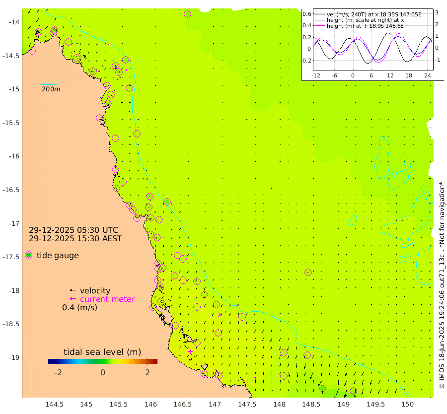 2cm/s -75T +11cm/s rms + 4cm/s -61T. GBRLSL 354m 10cm/s -163T +15cm/s rms + 2cm/s -84T. GBRLSH 32m 10cm/s -156T +15cm/s rms + 5cm/s -155T. GBRPPS 72m 5cm/s -154T +17cm/s rms + 13cm/s 115T. GBRMYR 223m 14cm/s 167T +18cm/s rms + 0cm/s -9T. NRSYON 29m 36cm Osprey Reef - West 35cm Stanley Island 37cm Pipon Islands 36cm Cape Melville 39cm Munro Reef 38cm Leggatt Island 42cm Normanby River 36cm Carter Reef 41cm Lizard Island (QLD) 34cm East Petherbridge Island 34cm North Direction Island 41cm Cape Flattery 42cm Ribbon Reef No.9 56cm Low Wooded Island 32cm Cape Bedford 24cm Endeavour River North 41cm Cooktown 44cm Cruiser Passage 45cm East Hope Island 37cm Bailay Creek 41cm Low Islets 43cm Port Douglas 47cm Palm Cove 47cm Yorkeys Knob 35cm Michaelmas Cay 28cm Euston Reef 44cm Cairns 42cm Green Island 48cm Fitzroy Island 40cm Sudbury Cay 47cm High Island 39cm Russell Island 46cm Peart Reef 45cm Nathan Reef 43cm Mourilyan Harbour 43cm Cowley Beach 42cm North Barnard Island 42cm Eddy Reef 57cm Beaver Reef 43cm Unnamed Reef No. 1 41cm Flinders Reef 45cm Clump Point 49cm Dunk Island 44cm Barnett Patches 50cm Goold Island 47cm Cardwell 52cm Britomart Reef 41cm Pith Reef 46cm Dip Reef 48cm Lucinda (Offshore) 47cm John Brewer Reef 48cm Albino Rock 44cm Shrimp Reef 38cm Jaguar Reef 51cm Townsville 49cm Cape Ferguson 39cm Stanley Reef 30cm Wallaby Reef 35cm Kennedy Reef