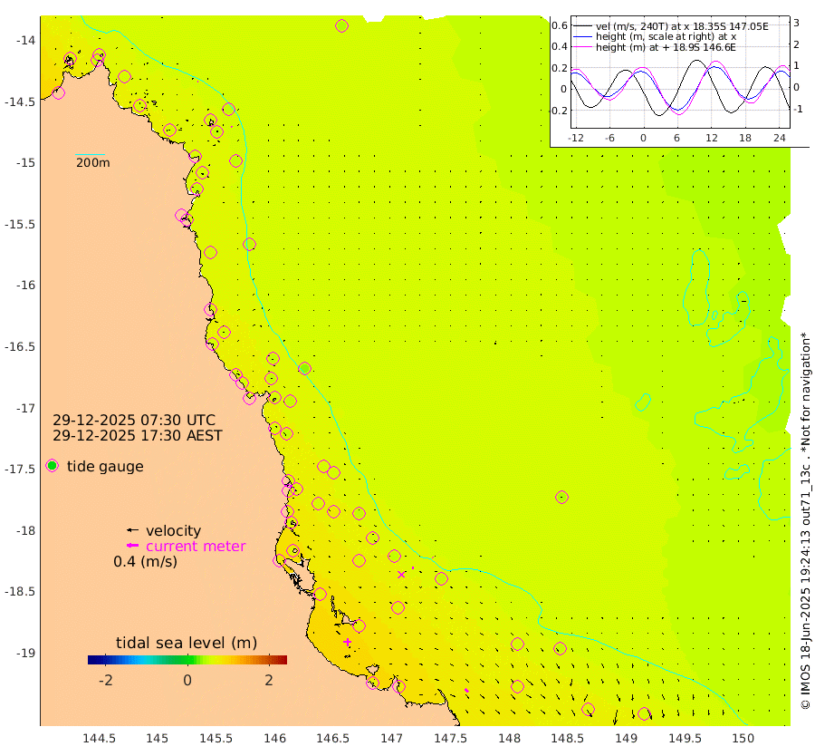 1cm/s -63T +11cm/s rms + 4cm/s -61T. GBRLSL 354m 3cm/s 156T +15cm/s rms + 2cm/s -84T. GBRLSH 32m 5cm/s 97T +15cm/s rms + 5cm/s -155T. GBRPPS 72m 2cm/s 131T +17cm/s rms + 13cm/s 115T. GBRMYR 223m 15cm/s 132T +18cm/s rms + 0cm/s -9T. NRSYON 29m 41cm Osprey Reef - West 58cm Stanley Island 56cm Pipon Islands 52cm Cape Melville 59cm Munro Reef 55cm Leggatt Island 69cm Normanby River 51cm Carter Reef 55cm Lizard Island (QLD) 56cm East Petherbridge Island 52cm North Direction Island 56cm Cape Flattery 49cm Ribbon Reef No.9 60cm Low Wooded Island 48cm Cape Bedford 29cm Endeavour River North 54cm Cooktown 48cm Cruiser Passage 56cm East Hope Island 58cm Bailay Creek 54cm Low Islets 56cm Port Douglas 55cm Palm Cove 55cm Yorkeys Knob 46cm Michaelmas Cay 36cm Euston Reef 58cm Cairns 49cm Green Island 54cm Fitzroy Island 50cm Sudbury Cay 53cm High Island 45cm Russell Island 56cm Peart Reef 53cm Nathan Reef 57cm Mourilyan Harbour 59cm Cowley Beach 65cm North Barnard Island 53cm Eddy Reef 77cm Beaver Reef 51cm Unnamed Reef No. 1 40cm Flinders Reef 60cm Clump Point 64cm Dunk Island 58cm Barnett Patches 66cm Goold Island 75cm Cardwell 61cm Britomart Reef 50cm Pith Reef 46cm Dip Reef 69cm Lucinda (Offshore) 65cm John Brewer Reef 69cm Albino Rock 58cm Shrimp Reef 46cm Jaguar Reef 74cm Townsville 68cm Cape Ferguson 65cm Stanley Reef 60cm Wallaby Reef 55cm Kennedy Reef