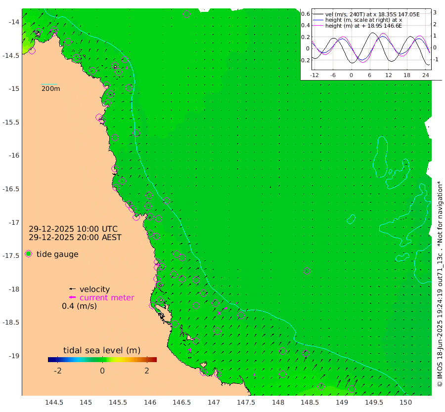 0cm/s 108T +11cm/s rms + 4cm/s -61T. GBRLSL 354m 16cm/s 19T +15cm/s rms + 2cm/s -84T. GBRLSH 32m 16cm/s 42T +15cm/s rms + 5cm/s -155T. GBRPPS 72m 6cm/s 46T +17cm/s rms + 13cm/s 115T. GBRMYR 223m 11cm/s 35T +18cm/s rms + 0cm/s -9T. NRSYON 29m -11cm Osprey Reef - West 9cm Stanley Island 7cm Pipon Islands 1cm Cape Melville 5cm Munro Reef 2cm Leggatt Island 15cm Normanby River -4cm Carter Reef -3cm Lizard Island (QLD) 9cm East Petherbridge Island 3cm North Direction Island -3cm Cape Flattery -9cm Ribbon Reef No.9 -11cm Low Wooded Island 1cm Cape Bedford -2cm Endeavour River North -4cm Cooktown -12cm Cruiser Passage -9cm East Hope Island 10cm Bailay Creek -2cm Low Islets -5cm Port Douglas -10cm Palm Cove -10cm Yorkeys Knob -6cm Michaelmas Cay -11cm Euston Reef -5cm Cairns -13cm Green Island -13cm Fitzroy Island -8cm Sudbury Cay -12cm High Island -11cm Russell Island -7cm Peart Reef -9cm Nathan Reef -5cm Mourilyan Harbour -3cm Cowley Beach 8cm North Barnard Island -7cm Eddy Reef -3cm Beaver Reef -11cm Unnamed Reef No. 1 -22cm Flinders Reef -5cm Clump Point -6cm Dunk Island -3cm Barnett Patches -6cm Goold Island 9cm Cardwell -14cm Britomart Reef -8cm Pith Reef -19cm Dip Reef 0cm Lucinda (Offshore) -2cm John Brewer Reef 0cm Albino Rock -7cm Shrimp Reef -14cm Jaguar Reef -1cm Townsville -4cm Cape Ferguson 8cm Stanley Reef 13cm Wallaby Reef -3cm Kennedy Reef
