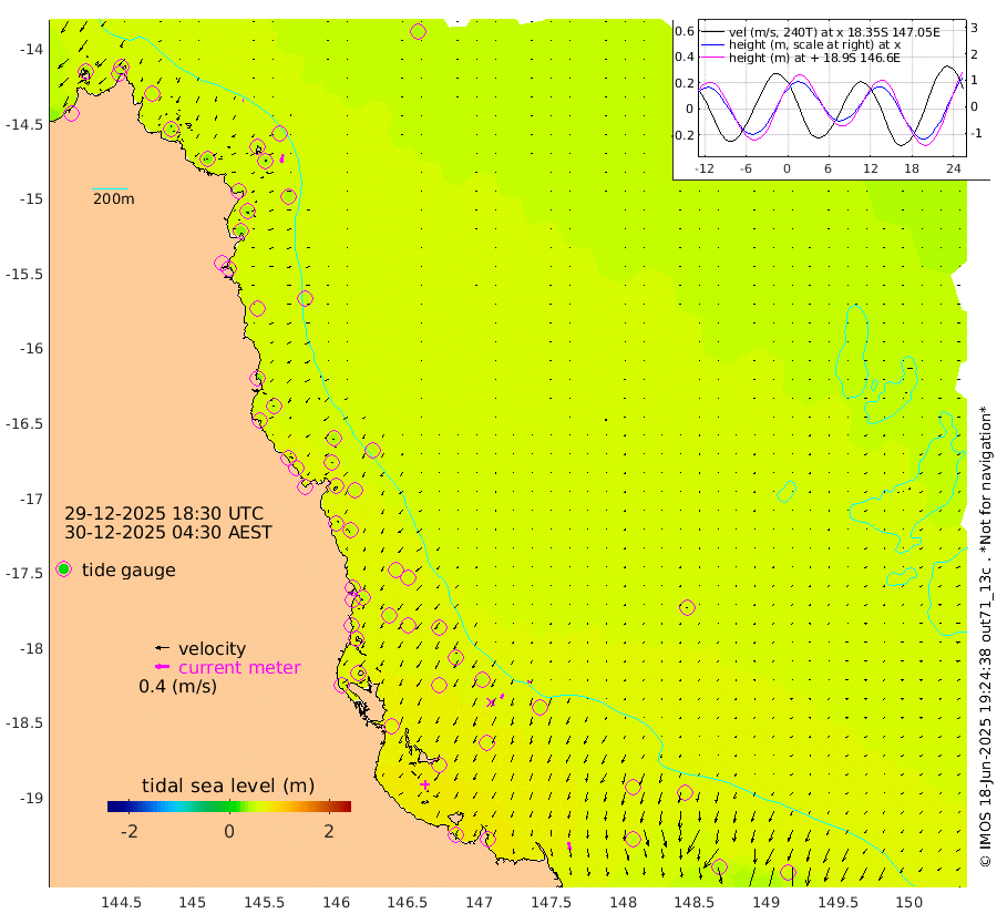 2cm/s 100T +11cm/s rms + 4cm/s -61T. GBRLSL 354m 23cm/s -169T +15cm/s rms + 2cm/s -84T. GBRLSH 32m 15cm/s -153T +15cm/s rms + 5cm/s -155T. GBRPPS 72m 7cm/s -150T +17cm/s rms + 13cm/s 115T. GBRMYR 223m 21cm/s 170T +18cm/s rms + 0cm/s -9T. NRSYON 29m 42cm Osprey Reef - West 42cm Stanley Island 49cm Pipon Islands 41cm Cape Melville 45cm Munro Reef 45cm Leggatt Island 43cm Normanby River 49cm Carter Reef 48cm Lizard Island (QLD) 36cm East Petherbridge Island 38cm North Direction Island 48cm Cape Flattery 44cm Ribbon Reef No.9 41cm Low Wooded Island 37cm Cape Bedford 19cm Endeavour River North 49cm Cooktown 45cm Cruiser Passage 57cm East Hope Island 33cm Bailay Creek 45cm Low Islets 53cm Port Douglas 56cm Palm Cove 55cm Yorkeys Knob 45cm Michaelmas Cay 47cm Euston Reef 54cm Cairns 55cm Green Island 64cm Fitzroy Island 52cm Sudbury Cay 55cm High Island 50cm Russell Island 54cm Peart Reef 54cm Nathan Reef 53cm Mourilyan Harbour 55cm Cowley Beach 47cm North Barnard Island 49cm Eddy Reef 67cm Beaver Reef 54cm Unnamed Reef No. 1 53cm Flinders Reef 58cm Clump Point 61cm Dunk Island 49cm Barnett Patches 64cm Goold Island 58cm Cardwell 68cm Britomart Reef 51cm Pith Reef 52cm Dip Reef 62cm Lucinda (Offshore) 58cm John Brewer Reef 62cm Albino Rock 56cm Shrimp Reef 60cm Jaguar Reef 69cm Townsville 67cm Cape Ferguson 46cm Stanley Reef 41cm Wallaby Reef 55cm Kennedy Reef
