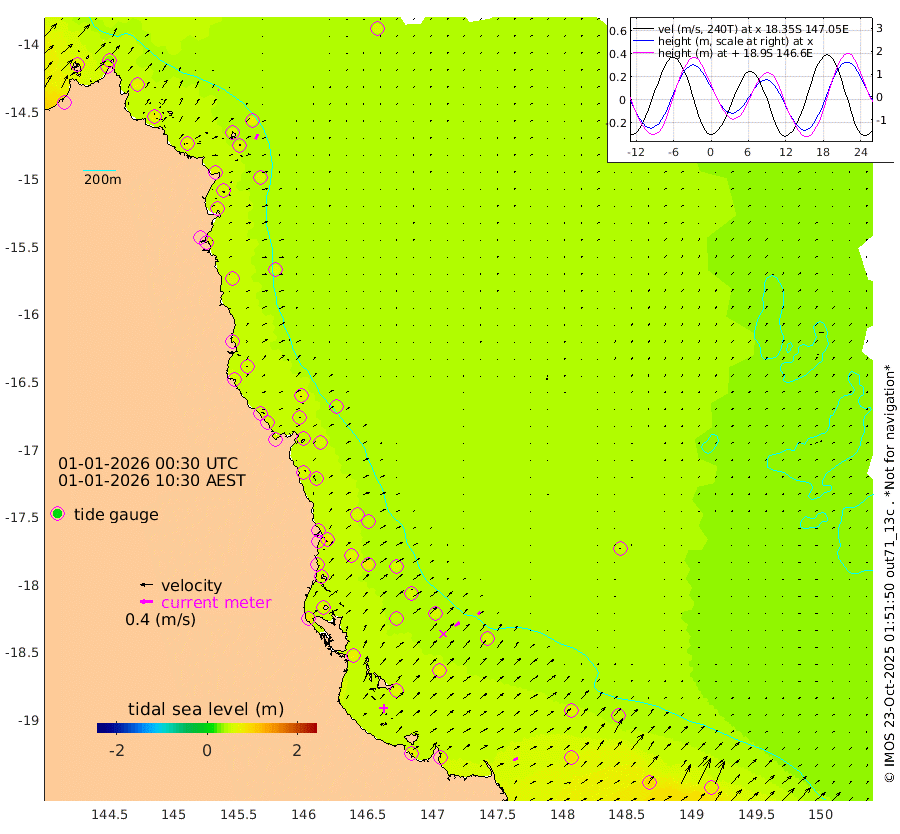 2cm/s -68T +11cm/s rms + 4cm/s -61T. GBRLSL 354m 18cm/s 24T +15cm/s rms + 2cm/s -84T. GBRLSH 32m 20cm/s 51T +15cm/s rms + 5cm/s -155T. GBRPPS 72m 9cm/s 45T +17cm/s rms + 13cm/s 115T. GBRMYR 223m 15cm/s 69T +18cm/s rms + 0cm/s -9T. NRSYON 29m 53cm Osprey Reef - West 73cm Stanley Island 34cm Pipon Islands 66cm Cape Melville 69cm Munro Reef 69cm Leggatt Island 72cm Normanby River 69cm Carter Reef 62cm Lizard Island (QLD) 70cm East Petherbridge Island 64cm North Direction Island 66cm Cape Flattery 59cm Ribbon Reef No.9 60cm Low Wooded Island 62cm Cape Bedford 36cm Endeavour River North 61cm Cooktown 54cm Cruiser Passage 58cm East Hope Island 64cm Bailay Creek 56cm Low Islets 59cm Port Douglas 55cm Palm Cove 53cm Yorkeys Knob 64cm Michaelmas Cay 49cm Euston Reef 61cm Cairns 51cm Green Island 50cm Fitzroy Island 58cm Sudbury Cay 53cm High Island 45cm Russell Island 56cm Peart Reef 50cm Nathan Reef 63cm Mourilyan Harbour 60cm Cowley Beach 76cm North Barnard Island 63cm Eddy Reef 81cm Beaver Reef 57cm Unnamed Reef No. 1 48cm Flinders Reef 63cm Clump Point 65cm Dunk Island 59cm Barnett Patches 66cm Goold Island 82cm Cardwell 52cm Britomart Reef 57cm Pith Reef 55cm Dip Reef 70cm Lucinda (Offshore) 71cm John Brewer Reef 65cm Albino Rock 65cm Shrimp Reef 52cm Jaguar Reef 70cm Townsville 66cm Cape Ferguson 86cm Stanley Reef 92cm Wallaby Reef 73cm Kennedy Reef