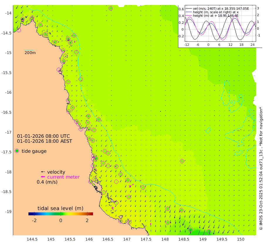 0cm/s -140T +11cm/s rms + 4cm/s -61T. GBRLSL 354m 16cm/s -167T +15cm/s rms + 2cm/s -84T. GBRLSH 32m 13cm/s -151T +15cm/s rms + 5cm/s -155T. GBRPPS 72m 7cm/s -149T +17cm/s rms + 13cm/s 115T. GBRMYR 223m 14cm/s -178T +18cm/s rms + 0cm/s -9T. NRSYON 29m 27cm Osprey Reef - West 27cm Stanley Island 36cm Pipon Islands 25cm Cape Melville 29cm Munro Reef 29cm Leggatt Island 34cm Normanby River 27cm Carter Reef 30cm Lizard Island (QLD) 29cm East Petherbridge Island 27cm North Direction Island 32cm Cape Flattery 32cm Ribbon Reef No.9 46cm Low Wooded Island 27cm Cape Bedford 9cm Endeavour River North 32cm Cooktown 34cm Cruiser Passage 35cm East Hope Island 28cm Bailay Creek 32cm Low Islets 35cm Port Douglas 39cm Palm Cove 37cm Yorkeys Knob 24cm Michaelmas Cay 26cm Euston Reef 36cm Cairns 35cm Green Island 35cm Fitzroy Island 31cm Sudbury Cay 36cm High Island 34cm Russell Island 37cm Peart Reef 36cm Nathan Reef 34cm Mourilyan Harbour 35cm Cowley Beach 21cm North Barnard Island 34cm Eddy Reef 44cm Beaver Reef 34cm Unnamed Reef No. 1 30cm Flinders Reef 37cm Clump Point 39cm Dunk Island 33cm Barnett Patches 42cm Goold Island 38cm Cardwell 47cm Britomart Reef 28cm Pith Reef 34cm Dip Reef 40cm Lucinda (Offshore) 34cm John Brewer Reef 44cm Albino Rock 30cm Shrimp Reef 28cm Jaguar Reef 45cm Townsville 42cm Cape Ferguson 23cm Stanley Reef 10cm Wallaby Reef 22cm Kennedy Reef