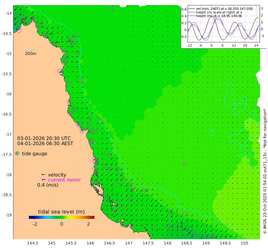 0cm/s 179T +11cm/s rms + 4cm/s -61T. GBRLSL 354m 29cm/s -160T +15cm/s rms + 2cm/s -84T. GBRLSH 32m 28cm/s -137T +15cm/s rms + 5cm/s -155T. GBRPPS 72m 12cm/s -138T +17cm/s rms + 13cm/s 115T. GBRMYR 223m 19cm/s -140T +18cm/s rms + 0cm/s -9T. NRSYON 29m 6cm Osprey Reef - West -13cm Stanley Island -18cm Pipon Islands -13cm Cape Melville -14cm Munro Reef -13cm Leggatt Island -17cm Normanby River -10cm Carter Reef -3cm Lizard Island (QLD) -9cm East Petherbridge Island -3cm North Direction Island -3cm Cape Flattery 3cm Ribbon Reef No.9 3cm Low Wooded Island -2cm Cape Bedford 7cm Endeavour River North -1cm Cooktown 8cm Cruiser Passage 7cm East Hope Island -14cm Bailay Creek -2cm Low Islets 1cm Port Douglas 7cm Palm Cove 5cm Yorkeys Knob -2cm Michaelmas Cay 20cm Euston Reef -1cm Cairns 15cm Green Island 4cm Fitzroy Island 5cm Sudbury Cay 5cm High Island 17cm Russell Island 6cm Peart Reef 5cm Nathan Reef -1cm Mourilyan Harbour 5cm Cowley Beach -24cm North Barnard Island 2cm Eddy Reef -3cm Beaver Reef 9cm Unnamed Reef No. 1 20cm Flinders Reef 1cm Clump Point -2cm Dunk Island 6cm Barnett Patches 2cm Goold Island -19cm Cardwell 12cm Britomart Reef 8cm Pith Reef 15cm Dip Reef -4cm Lucinda (Offshore) -11cm John Brewer Reef 5cm Albino Rock 3cm Shrimp Reef 15cm Jaguar Reef -1cm Townsville 2cm Cape Ferguson -23cm Stanley Reef -30cm Wallaby Reef -10cm Kennedy Reef