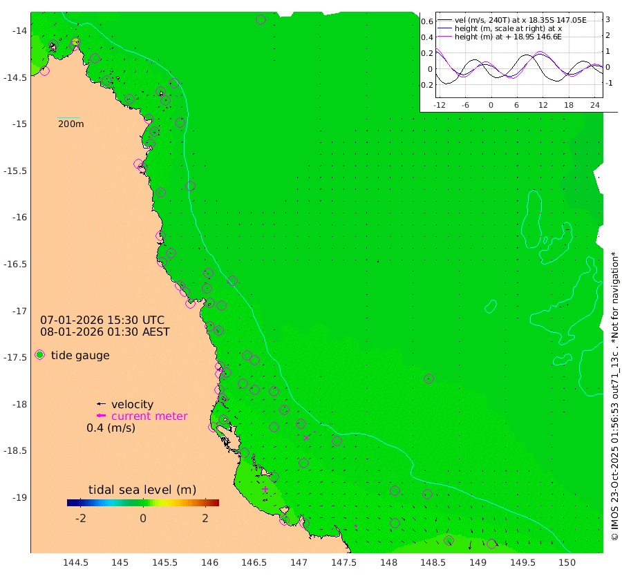 2cm/s 101T +11cm/s rms + 4cm/s -61T. GBRLSL 354m 2cm/s 15T +15cm/s rms + 2cm/s -84T. GBRLSH 32m 5cm/s 54T +15cm/s rms + 5cm/s -155T. GBRPPS 72m 1cm/s 94T +17cm/s rms + 13cm/s 115T. GBRMYR 223m 10cm/s 127T +18cm/s rms + 0cm/s -9T. NRSYON 29m 1cm Osprey Reef - West 0cm Stanley Island 32cm Pipon Islands 4cm Cape Melville -1cm Munro Reef 5cm Leggatt Island 8cm Normanby River -4cm Carter Reef -1cm Lizard Island (QLD) -6cm East Petherbridge Island -6cm North Direction Island -3cm Cape Flattery -5cm Ribbon Reef No.9 -13cm Low Wooded Island -6cm Cape Bedford -1cm Endeavour River North -1cm Cooktown -7cm Cruiser Passage -10cm East Hope Island -7cm Bailay Creek -3cm Low Islets 2cm Port Douglas 1cm Palm Cove 2cm Yorkeys Knob -1cm Michaelmas Cay -12cm Euston Reef 3cm Cairns -6cm Green Island 3cm Fitzroy Island -2cm Sudbury Cay 3cm High Island -8cm Russell Island -2cm Peart Reef 2cm Nathan Reef 3cm Mourilyan Harbour 1cm Cowley Beach 10cm North Barnard Island 3cm Eddy Reef 0cm Beaver Reef 1cm Unnamed Reef No. 1 -7cm Flinders Reef 5cm Clump Point 7cm Dunk Island -5cm Barnett Patches 8cm Goold Island 15cm Cardwell 3cm Britomart Reef -2cm Pith Reef -4cm Dip Reef 10cm Lucinda (Offshore) 3cm John Brewer Reef 6cm Albino Rock -4cm Shrimp Reef 1cm Jaguar Reef 13cm Townsville 10cm Cape Ferguson 9cm Stanley Reef 13cm Wallaby Reef 22cm Kennedy Reef