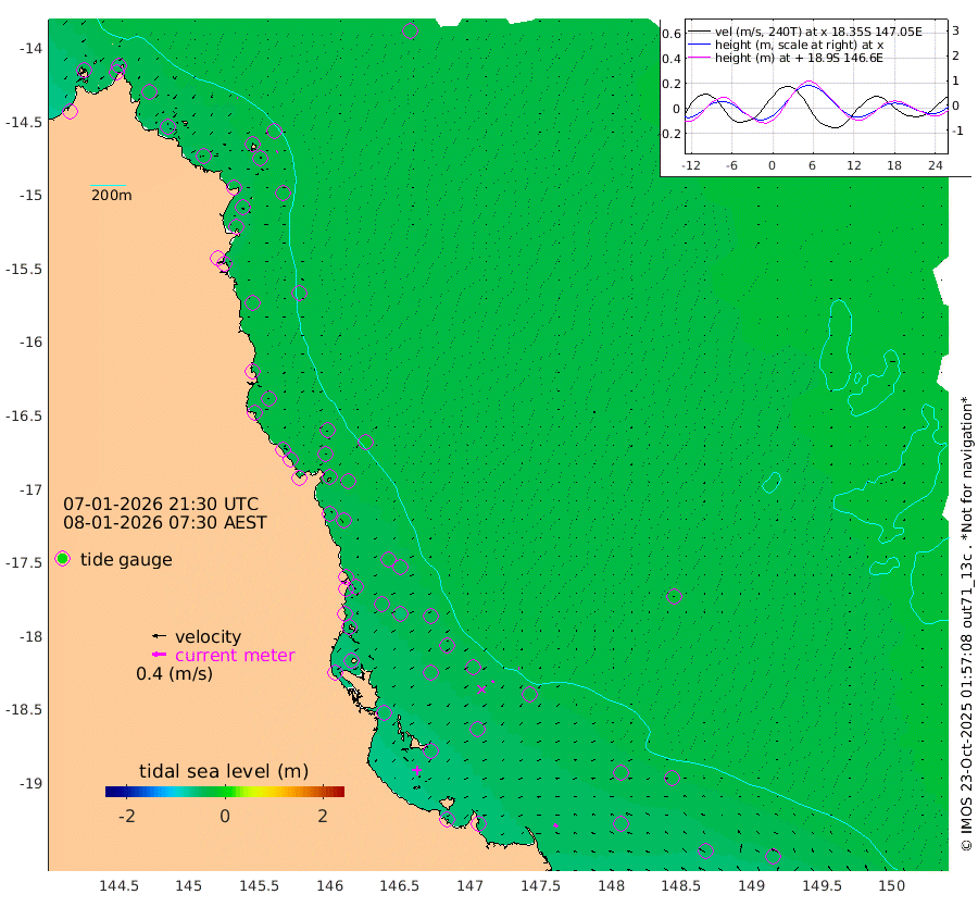 1cm/s -84T +11cm/s rms + 4cm/s -61T. GBRLSL 354m 2cm/s -122T +15cm/s rms + 2cm/s -84T. GBRLSH 32m 6cm/s -113T +15cm/s rms + 5cm/s -155T. GBRPPS 72m 2cm/s -112T +17cm/s rms + 13cm/s 115T. GBRMYR 223m 11cm/s -61T +18cm/s rms + 0cm/s -9T. NRSYON 29m -37cm Osprey Reef - West -40cm Stanley Island -55cm Pipon Islands -40cm Cape Melville -44cm Munro Reef -45cm Leggatt Island -50cm Normanby River -36cm Carter Reef -38cm Lizard Island (QLD) -37cm East Petherbridge Island -35cm North Direction Island -34cm Cape Flattery -36cm Ribbon Reef No.9 -40cm Low Wooded Island -31cm Cape Bedford -28cm Endeavour River North -38cm Cooktown -35cm Cruiser Passage -31cm East Hope Island -42cm Bailay Creek -37cm Low Islets -41cm Port Douglas -40cm Palm Cove -43cm Yorkeys Knob -35cm Michaelmas Cay -20cm Euston Reef -43cm Cairns -32cm Green Island -35cm Fitzroy Island -36cm Sudbury Cay -41cm High Island -25cm Russell Island -36cm Peart Reef -40cm Nathan Reef -43cm Mourilyan Harbour -40cm Cowley Beach -48cm North Barnard Island -45cm Eddy Reef -56cm Beaver Reef -39cm Unnamed Reef No. 1 -24cm Flinders Reef -44cm Clump Point -45cm Dunk Island -39cm Barnett Patches -48cm Goold Island -57cm Cardwell -42cm Britomart Reef -38cm Pith Reef -36cm Dip Reef -50cm Lucinda (Offshore) -39cm John Brewer Reef -47cm Albino Rock -36cm Shrimp Reef -34cm Jaguar Reef -53cm Townsville -49cm Cape Ferguson -52cm Stanley Reef -50cm Wallaby Reef -52cm Kennedy Reef