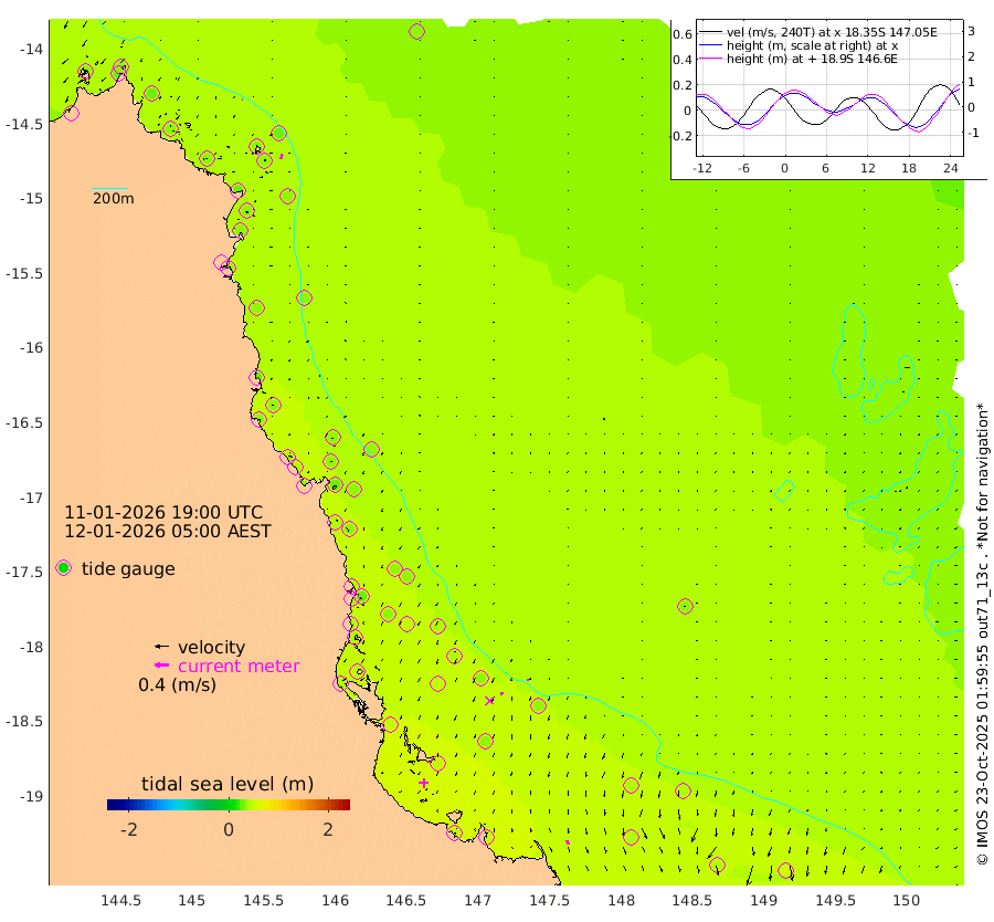 2cm/s 95T +11cm/s rms + 4cm/s -61T. GBRLSL 354m 14cm/s -169T +15cm/s rms + 2cm/s -84T. GBRLSH 32m 7cm/s -160T +15cm/s rms + 5cm/s -155T. GBRPPS 72m 4cm/s -158T +17cm/s rms + 13cm/s 115T. GBRMYR 223m 11cm/s 164T +18cm/s rms + 0cm/s -9T. NRSYON 29m 35cm Osprey Reef - West 30cm Stanley Island 32cm Pipon Islands 28cm Cape Melville 28cm Munro Reef 31cm Leggatt Island 31cm Normanby River 26cm Carter Reef 34cm Lizard Island (QLD) 30cm East Petherbridge Island 33cm North Direction Island 30cm Cape Flattery 31cm Ribbon Reef No.9 30cm Low Wooded Island 32cm Cape Bedford 29cm Endeavour River North 34cm Cooktown 32cm Cruiser Passage 32cm East Hope Island 26cm Bailay Creek 31cm Low Islets 37cm Port Douglas 39cm Palm Cove 39cm Yorkeys Knob 31cm Michaelmas Cay 33cm Euston Reef 37cm Cairns 37cm Green Island 25cm Fitzroy Island 33cm Sudbury Cay 38cm High Island 33cm Russell Island 37cm Peart Reef 36cm Nathan Reef 38cm Mourilyan Harbour 41cm Cowley Beach 29cm North Barnard Island 36cm Eddy Reef 45cm Beaver Reef 41cm Unnamed Reef No. 1 34cm Flinders Reef 42cm Clump Point 42cm Dunk Island 39cm Barnett Patches 47cm Goold Island 42cm Cardwell 45cm Britomart Reef 36cm Pith Reef 37cm Dip Reef 45cm Lucinda (Offshore) 33cm John Brewer Reef 46cm Albino Rock 38cm Shrimp Reef 44cm Jaguar Reef 50cm Townsville 49cm Cape Ferguson 44cm Stanley Reef 39cm Wallaby Reef 55cm Kennedy Reef