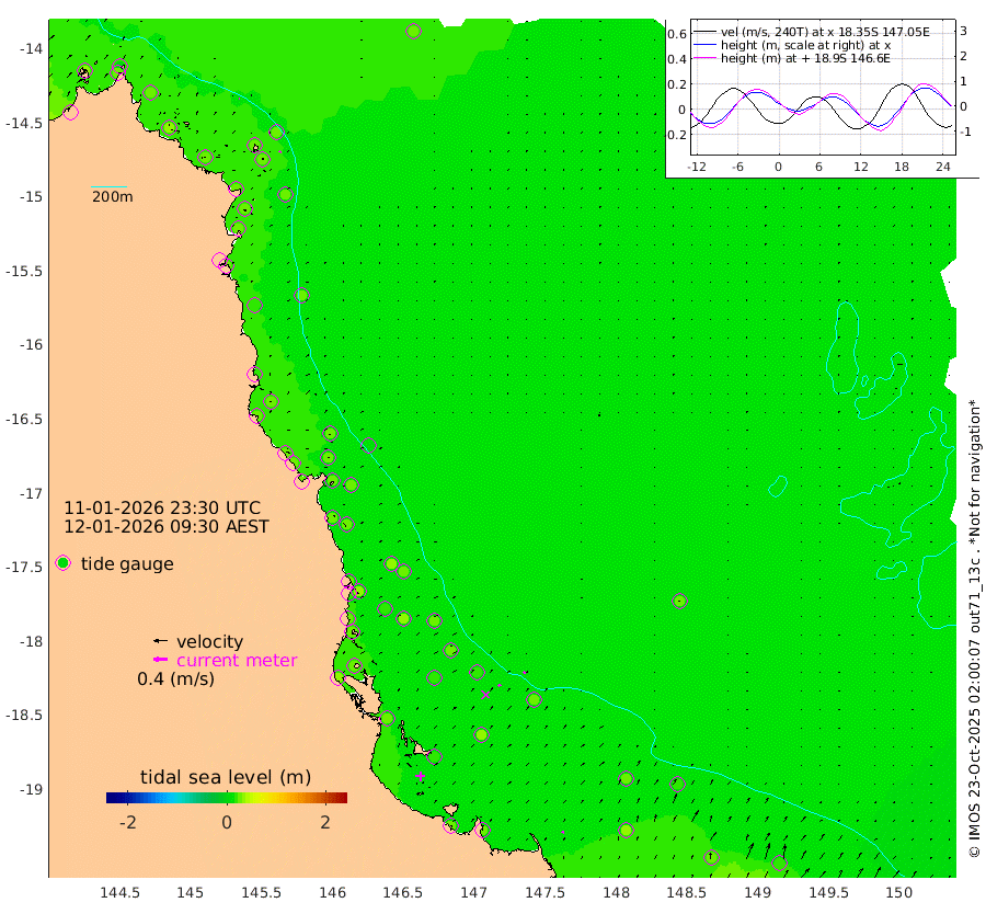 2cm/s -82T +11cm/s rms + 4cm/s -61T. GBRLSL 354m 5cm/s 18T +15cm/s rms + 2cm/s -84T. GBRLSH 32m 8cm/s 51T +15cm/s rms + 5cm/s -155T. GBRPPS 72m 4cm/s 43T +17cm/s rms + 13cm/s 115T. GBRMYR 223m 6cm/s 25T +18cm/s rms + 0cm/s -9T. NRSYON 29m 23cm Osprey Reef - West 32cm Stanley Island 3cm Pipon Islands 26cm Cape Melville 27cm Munro Reef 30cm Leggatt Island 32cm Normanby River 28cm Carter Reef 26cm Lizard Island (QLD) 26cm East Petherbridge Island 23cm North Direction Island 28cm Cape Flattery 27cm Ribbon Reef No.9 25cm Low Wooded Island 23cm Cape Bedford 19cm Endeavour River North 26cm Cooktown 25cm Cruiser Passage 22cm East Hope Island 19cm Bailay Creek 25cm Low Islets 24cm Port Douglas 24cm Palm Cove 27cm Yorkeys Knob 28cm Michaelmas Cay 12cm Euston Reef 25cm Cairns 25cm Green Island 23cm Fitzroy Island 26cm Sudbury Cay 25cm High Island 26cm Russell Island 31cm Peart Reef 26cm Nathan Reef 25cm Mourilyan Harbour 22cm Cowley Beach 33cm North Barnard Island 20cm Eddy Reef 33cm Beaver Reef 25cm Unnamed Reef No. 1 25cm Flinders Reef 25cm Clump Point 29cm Dunk Island 24cm Barnett Patches 27cm Goold Island 30cm Cardwell 22cm Britomart Reef 20cm Pith Reef 27cm Dip Reef 27cm Lucinda (Offshore) 37cm John Brewer Reef 22cm Albino Rock 23cm Shrimp Reef 15cm Jaguar Reef 26cm Townsville 24cm Cape Ferguson 31cm Stanley Reef 28cm Wallaby Reef 18cm Kennedy Reef