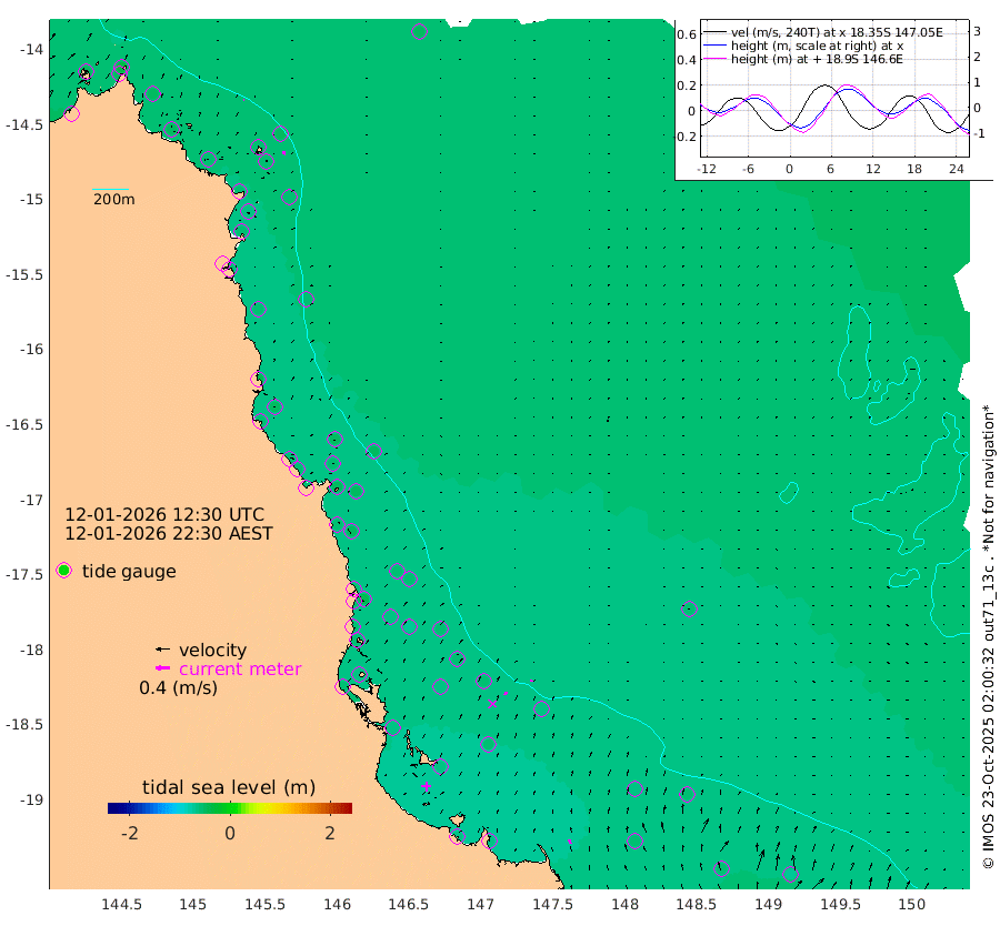 1cm/s 124T +11cm/s rms + 4cm/s -61T. GBRLSL 354m 10cm/s 11T +15cm/s rms + 2cm/s -84T. GBRLSH 32m 10cm/s 17T +15cm/s rms + 5cm/s -155T. GBRPPS 72m 5cm/s 23T +17cm/s rms + 13cm/s 115T. GBRMYR 223m 12cm/s -15T +18cm/s rms + 0cm/s -9T. NRSYON 29m -52cm Osprey Reef - West -48cm Stanley Island -34cm Pipon Islands -49cm Cape Melville -48cm Munro Reef -49cm Leggatt Island -46cm Normanby River -47cm Carter Reef -55cm Lizard Island (QLD) -53cm East Petherbridge Island -54cm North Direction Island -54cm Cape Flattery -54cm Ribbon Reef No.9 -61cm Low Wooded Island -53cm Cape Bedford -36cm Endeavour River North -55cm Cooktown -55cm Cruiser Passage -57cm East Hope Island -45cm Bailay Creek -52cm Low Islets -56cm Port Douglas -59cm Palm Cove -55cm Yorkeys Knob -49cm Michaelmas Cay -52cm Euston Reef -57cm Cairns -54cm Green Island -47cm Fitzroy Island -52cm Sudbury Cay -56cm High Island -49cm Russell Island -55cm Peart Reef -53cm Nathan Reef -57cm Mourilyan Harbour -59cm Cowley Beach -44cm North Barnard Island -60cm Eddy Reef -70cm Beaver Reef -59cm Unnamed Reef No. 1 -57cm Flinders Reef -60cm Clump Point -58cm Dunk Island -58cm Barnett Patches -65cm Goold Island -60cm Cardwell -63cm Britomart Reef -57cm Pith Reef -62cm Dip Reef -62cm Lucinda (Offshore) -53cm John Brewer Reef -65cm Albino Rock -61cm Shrimp Reef -60cm Jaguar Reef -67cm Townsville -66cm Cape Ferguson -60cm Stanley Reef -57cm Wallaby Reef -72cm Kennedy Reef
