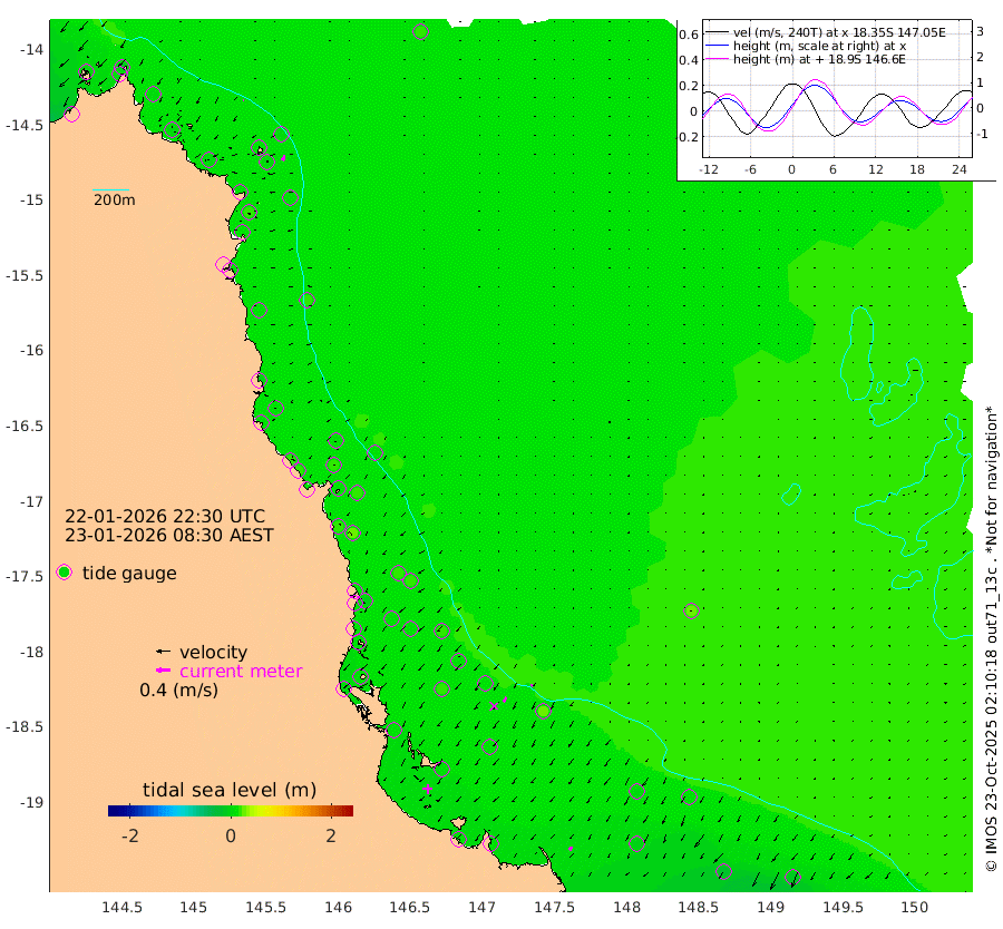 2cm/s -100T +11cm/s rms + 4cm/s -61T. GBRLSL 354m 15cm/s -158T +15cm/s rms + 2cm/s -84T. GBRLSH 32m 15cm/s -141T +15cm/s rms + 5cm/s -155T. GBRPPS 72m 7cm/s -143T +17cm/s rms + 13cm/s 115T. GBRMYR 223m 11cm/s -143T +18cm/s rms + 0cm/s -9T. NRSYON 29m 16cm Osprey Reef - West 6cm Stanley Island -11cm Pipon Islands 3cm Cape Melville 1cm Munro Reef 6cm Leggatt Island 8cm Normanby River 3cm Carter Reef 9cm Lizard Island (QLD) 6cm East Petherbridge Island 7cm North Direction Island 11cm Cape Flattery 15cm Ribbon Reef No.9 18cm Low Wooded Island 9cm Cape Bedford 16cm Endeavour River North 11cm Cooktown 18cm Cruiser Passage 11cm East Hope Island -4cm Bailay Creek 10cm Low Islets 11cm Port Douglas 16cm Palm Cove 18cm Yorkeys Knob 12cm Michaelmas Cay 15cm Euston Reef 11cm Cairns 22cm Green Island 13cm Fitzroy Island 16cm Sudbury Cay 16cm High Island 27cm Russell Island 21cm Peart Reef 17cm Nathan Reef 10cm Mourilyan Harbour 12cm Cowley Beach -2cm North Barnard Island 9cm Eddy Reef 13cm Beaver Reef 17cm Unnamed Reef No. 1 25cm Flinders Reef 12cm Clump Point 13cm Dunk Island 14cm Barnett Patches 14cm Goold Island 0cm Cardwell 18cm Britomart Reef 13cm Pith Reef 25cm Dip Reef 9cm Lucinda (Offshore) 11cm John Brewer Reef 13cm Albino Rock 7cm Shrimp Reef 11cm Jaguar Reef 10cm Townsville 11cm Cape Ferguson -6cm Stanley Reef -17cm Wallaby Reef -8cm Kennedy Reef