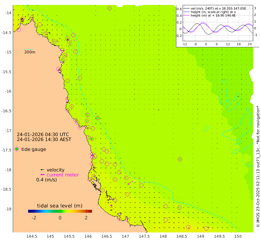 2cm/s -64T +11cm/s rms + 4cm/s -61T. GBRLSL 354m 6cm/s 22T +15cm/s rms + 2cm/s -84T. GBRLSH 32m 9cm/s 60T +15cm/s rms + 5cm/s -155T. GBRPPS 72m 3cm/s 57T +17cm/s rms + 13cm/s 115T. GBRMYR 223m 14cm/s 113T +18cm/s rms + 0cm/s -9T. NRSYON 29m 33cm Osprey Reef - West 44cm Stanley Island 42cm Pipon Islands 44cm Cape Melville 49cm Munro Reef 45cm Leggatt Island 52cm Normanby River 43cm Carter Reef 45cm Lizard Island (QLD) 43cm East Petherbridge Island 40cm North Direction Island 45cm Cape Flattery 40cm Ribbon Reef No.9 46cm Low Wooded Island 36cm Cape Bedford 26cm Endeavour River North 43cm Cooktown 39cm Cruiser Passage 45cm East Hope Island 47cm Bailay Creek 43cm Low Islets 43cm Port Douglas 42cm Palm Cove 41cm Yorkeys Knob 37cm Michaelmas Cay 23cm Euston Reef 45cm Cairns 34cm Green Island 45cm Fitzroy Island 39cm Sudbury Cay 40cm High Island 26cm Russell Island 40cm Peart Reef 40cm Nathan Reef 45cm Mourilyan Harbour 44cm Cowley Beach 59cm North Barnard Island 45cm Eddy Reef 61cm Beaver Reef 40cm Unnamed Reef No. 1 32cm Flinders Reef 46cm Clump Point 49cm Dunk Island 46cm Barnett Patches 50cm Goold Island 60cm Cardwell 42cm Britomart Reef 42cm Pith Reef 39cm Dip Reef 52cm Lucinda (Offshore) 52cm John Brewer Reef 50cm Albino Rock 50cm Shrimp Reef 39cm Jaguar Reef 54cm Townsville 51cm Cape Ferguson 59cm Stanley Reef 64cm Wallaby Reef 55cm Kennedy Reef