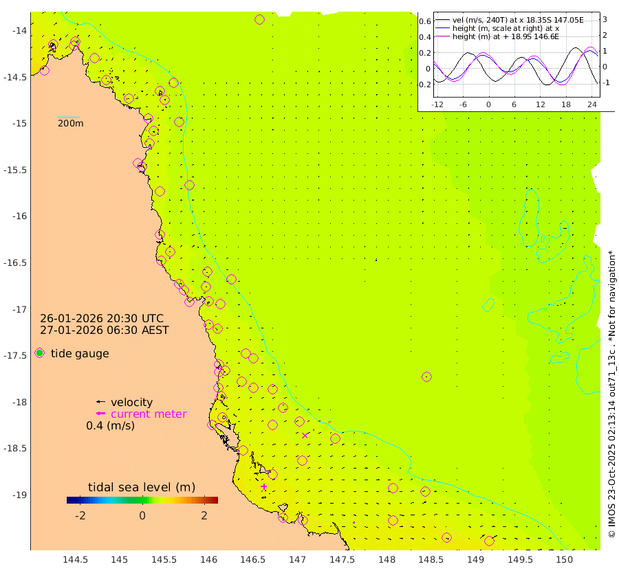 1cm/s 77T +11cm/s rms + 4cm/s -61T. GBRLSL 354m 4cm/s 62T +15cm/s rms + 2cm/s -84T. GBRLSH 32m 7cm/s 80T +15cm/s rms + 5cm/s -155T. GBRPPS 72m 3cm/s 83T +17cm/s rms + 13cm/s 115T. GBRMYR 223m 8cm/s 107T +18cm/s rms + 0cm/s -9T. NRSYON 29m 46cm Osprey Reef - West 65cm Stanley Island 39cm Pipon Islands 57cm Cape Melville 59cm Munro Reef 58cm Leggatt Island 62cm Normanby River 63cm Carter Reef 59cm Lizard Island (QLD) 63cm East Petherbridge Island 60cm North Direction Island 60cm Cape Flattery 51cm Ribbon Reef No.9 52cm Low Wooded Island 59cm Cape Bedford 27cm Endeavour River North 58cm Cooktown 49cm Cruiser Passage 61cm East Hope Island 56cm Bailay Creek 53cm Low Islets 59cm Port Douglas 56cm Palm Cove 54cm Yorkeys Knob 57cm Michaelmas Cay 55cm Euston Reef 59cm Cairns 55cm Green Island 50cm Fitzroy Island 56cm Sudbury Cay 55cm High Island 52cm Russell Island 58cm Peart Reef 52cm Nathan Reef 60cm Mourilyan Harbour 63cm Cowley Beach 64cm North Barnard Island 54cm Eddy Reef 76cm Beaver Reef 57cm Unnamed Reef No. 1 49cm Flinders Reef 63cm Clump Point 67cm Dunk Island 58cm Barnett Patches 68cm Goold Island 75cm Cardwell 62cm Britomart Reef 55cm Pith Reef 50cm Dip Reef 70cm Lucinda (Offshore) 70cm John Brewer Reef 68cm Albino Rock 66cm Shrimp Reef 58cm Jaguar Reef 74cm Townsville 71cm Cape Ferguson 76cm Stanley Reef 75cm Wallaby Reef 69cm Kennedy Reef