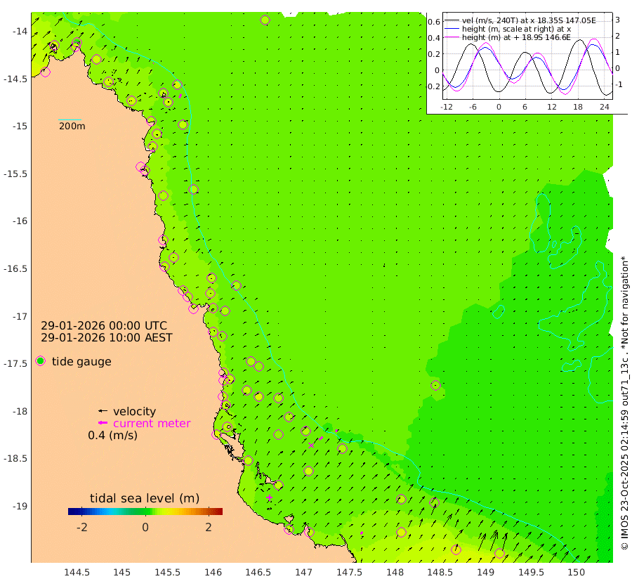 1cm/s -69T +11cm/s rms + 4cm/s -61T. GBRLSL 354m 18cm/s 22T +15cm/s rms + 2cm/s -84T. GBRLSH 32m 19cm/s 48T +15cm/s rms + 5cm/s -155T. GBRPPS 72m 9cm/s 42T +17cm/s rms + 13cm/s 115T. GBRMYR 223m 13cm/s 49T +18cm/s rms + 0cm/s -9T. NRSYON 29m 41cm Osprey Reef - West 60cm Stanley Island 19cm Pipon Islands 52cm Cape Melville 55cm Munro Reef 55cm Leggatt Island 58cm Normanby River 56cm Carter Reef 47cm Lizard Island (QLD) 60cm East Petherbridge Island 53cm North Direction Island 52cm Cape Flattery 46cm Ribbon Reef No.9 46cm Low Wooded Island 51cm Cape Bedford 28cm Endeavour River North 47cm Cooktown 41cm Cruiser Passage 44cm East Hope Island 51cm Bailay Creek 44cm Low Islets 45cm Port Douglas 41cm Palm Cove 39cm Yorkeys Knob 51cm Michaelmas Cay 40cm Euston Reef 47cm Cairns 38cm Green Island 34cm Fitzroy Island 44cm Sudbury Cay 38cm High Island 35cm Russell Island 42cm Peart Reef 37cm Nathan Reef 48cm Mourilyan Harbour 45cm Cowley Beach 57cm North Barnard Island 49cm Eddy Reef 62cm Beaver Reef 42cm Unnamed Reef No. 1 36cm Flinders Reef 47cm Clump Point 48cm Dunk Island 44cm Barnett Patches 48cm Goold Island 63cm Cardwell 36cm Britomart Reef 44cm Pith Reef 42cm Dip Reef 52cm Lucinda (Offshore) 55cm John Brewer Reef 47cm Albino Rock 49cm Shrimp Reef 37cm Jaguar Reef 51cm Townsville 48cm Cape Ferguson 66cm Stanley Reef 70cm Wallaby Reef 52cm Kennedy Reef