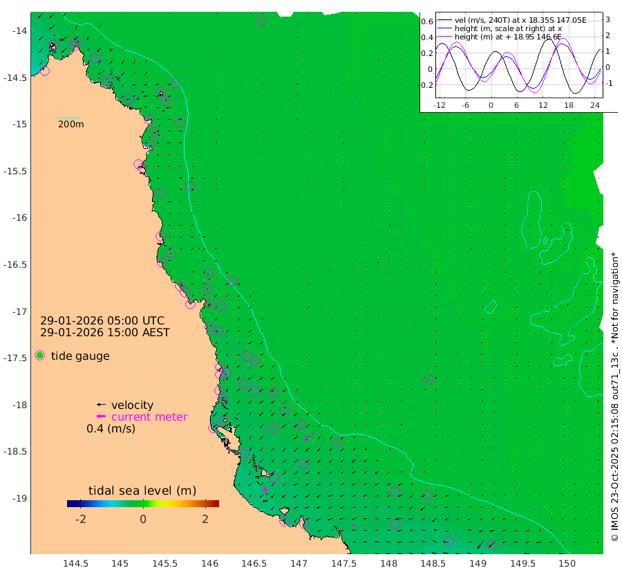 1cm/s -73T +11cm/s rms + 4cm/s -61T. GBRLSL 354m 3cm/s -112T +15cm/s rms + 2cm/s -84T. GBRLSH 32m 12cm/s -124T +15cm/s rms + 5cm/s -155T. GBRPPS 72m 5cm/s -124T +17cm/s rms + 13cm/s 115T. GBRMYR 223m 13cm/s -75T +18cm/s rms + 0cm/s -9T. NRSYON 29m -28cm Osprey Reef - West -50cm Stanley Island -35cm Pipon Islands -39cm Cape Melville -41cm Munro Reef -42cm Leggatt Island -59cm Normanby River -35cm Carter Reef -35cm Lizard Island (QLD) -43cm East Petherbridge Island -37cm North Direction Island -38cm Cape Flattery -29cm Ribbon Reef No.9 -21cm Low Wooded Island -34cm Cape Bedford -27cm Endeavour River North -36cm Cooktown -26cm Cruiser Passage -31cm East Hope Island -36cm Bailay Creek -33cm Low Islets -37cm Port Douglas -32cm Palm Cove -33cm Yorkeys Knob -39cm Michaelmas Cay -30cm Euston Reef -38cm Cairns -33cm Green Island -35cm Fitzroy Island -38cm Sudbury Cay -32cm High Island -33cm Russell Island -37cm Peart Reef -32cm Nathan Reef -38cm Mourilyan Harbour -42cm Cowley Beach -55cm North Barnard Island -34cm Eddy Reef -52cm Beaver Reef -34cm Unnamed Reef No. 1 -23cm Flinders Reef -42cm Clump Point -44cm Dunk Island -38cm Barnett Patches -45cm Goold Island -59cm Cardwell -33cm Britomart Reef -36cm Pith Reef -26cm Dip Reef -50cm Lucinda (Offshore) -47cm John Brewer Reef -48cm Albino Rock -38cm Shrimp Reef -34cm Jaguar Reef -54cm Townsville -49cm Cape Ferguson -52cm Stanley Reef -56cm Wallaby Reef -43cm Kennedy Reef