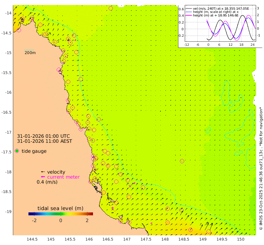 2cm/s -66T +11cm/s rms + 4cm/s -61T. GBRLSL 354m 17cm/s 26T +15cm/s rms + 2cm/s -84T. GBRLSH 32m 22cm/s 52T +15cm/s rms + 5cm/s -155T. GBRPPS 72m 10cm/s 45T +17cm/s rms + 13cm/s 115T. GBRMYR 223m 18cm/s 79T +18cm/s rms + 0cm/s -9T. NRSYON 29m 63cm Osprey Reef - West 86cm Stanley Island 48cm Pipon Islands 77cm Cape Melville 84cm Munro Reef 83cm Leggatt Island 91cm Normanby River 81cm Carter Reef 73cm Lizard Island (QLD) 81cm East Petherbridge Island 73cm North Direction Island 76cm Cape Flattery 70cm Ribbon Reef No.9 71cm Low Wooded Island 69cm Cape Bedford 47cm Endeavour River North 72cm Cooktown 65cm Cruiser Passage 68cm East Hope Island 76cm Bailay Creek 69cm Low Islets 71cm Port Douglas 67cm Palm Cove 68cm Yorkeys Knob 74cm Michaelmas Cay 49cm Euston Reef 74cm Cairns 61cm Green Island 63cm Fitzroy Island 69cm Sudbury Cay 64cm High Island 52cm Russell Island 68cm Peart Reef 64cm Nathan Reef 75cm Mourilyan Harbour 70cm Cowley Beach 93cm North Barnard Island 75cm Eddy Reef 100cm Beaver Reef 68cm Unnamed Reef No. 1 55cm Flinders Reef 75cm Clump Point 79cm Dunk Island 71cm Barnett Patches 79cm Goold Island 98cm Cardwell 63cm Britomart Reef 68cm Pith Reef 66cm Dip Reef 84cm Lucinda (Offshore) 86cm John Brewer Reef 76cm Albino Rock 75cm Shrimp Reef 59cm Jaguar Reef 84cm Townsville 79cm Cape Ferguson 99cm Stanley Reef 104cm Wallaby Reef 81cm Kennedy Reef