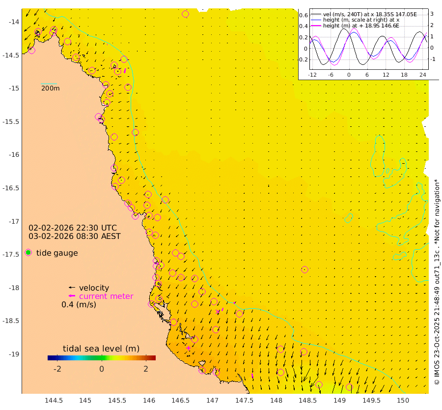 1cm/s -102T +11cm/s rms + 4cm/s -61T. GBRLSL 354m 29cm/s -166T +15cm/s rms + 2cm/s -84T. GBRLSH 32m 21cm/s -154T +15cm/s rms + 5cm/s -155T. GBRPPS 72m 10cm/s -149T +17cm/s rms + 13cm/s 115T. GBRMYR 223m 27cm/s 171T +18cm/s rms + 0cm/s -9T. NRSYON 29m 84cm Osprey Reef - West 85cm Stanley Island 59cm Pipon Islands 76cm Cape Melville 78cm Munro Reef 83cm Leggatt Island 95cm Normanby River 77cm Carter Reef 82cm Lizard Island (QLD) 88cm East Petherbridge Island 83cm North Direction Island 90cm Cape Flattery 87cm Ribbon Reef No.9 99cm Low Wooded Island 81cm Cape Bedford 58cm Endeavour River North 87cm Cooktown 89cm Cruiser Passage 90cm East Hope Island 72cm Bailay Creek 81cm Low Islets 91cm Port Douglas 95cm Palm Cove 91cm Yorkeys Knob 85cm Michaelmas Cay 94cm Euston Reef 92cm Cairns 96cm Green Island 86cm Fitzroy Island 92cm Sudbury Cay 89cm High Island 93cm Russell Island 92cm Peart Reef 86cm Nathan Reef 91cm Mourilyan Harbour 97cm Cowley Beach 73cm North Barnard Island 98cm Eddy Reef 118cm Beaver Reef 96cm Unnamed Reef No. 1 92cm Flinders Reef 98cm Clump Point 97cm Dunk Island 93cm Barnett Patches 105cm Goold Island 101cm Cardwell 104cm Britomart Reef 95cm Pith Reef 100cm Dip Reef 104cm Lucinda (Offshore) 86cm John Brewer Reef 112cm Albino Rock 91cm Shrimp Reef 93cm Jaguar Reef 112cm Townsville 108cm Cape Ferguson 80cm Stanley Reef 67cm Wallaby Reef 82cm Kennedy Reef