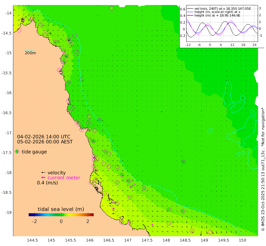 2cm/s 109T +11cm/s rms + 4cm/s -61T. GBRLSL 354m 5cm/s 24T +15cm/s rms + 2cm/s -84T. GBRLSH 32m 9cm/s 60T +15cm/s rms + 5cm/s -155T. GBRPPS 72m 2cm/s 78T +17cm/s rms + 13cm/s 115T. GBRMYR 223m 16cm/s 125T +18cm/s rms + 0cm/s -9T. NRSYON 29m 24cm Osprey Reef - West 27cm Stanley Island 49cm Pipon Islands 27cm Cape Melville 27cm Munro Reef 32cm Leggatt Island 40cm Normanby River 19cm Carter Reef 21cm Lizard Island (QLD) 21cm East Petherbridge Island 18cm North Direction Island 23cm Cape Flattery 21cm Ribbon Reef No.9 14cm Low Wooded Island 16cm Cape Bedford 18cm Endeavour River North 23cm Cooktown 18cm Cruiser Passage 11cm East Hope Island 17cm Bailay Creek 20cm Low Islets 27cm Port Douglas 25cm Palm Cove 25cm Yorkeys Knob 24cm Michaelmas Cay 9cm Euston Reef 29cm Cairns 17cm Green Island 25cm Fitzroy Island 23cm Sudbury Cay 24cm High Island 12cm Russell Island 21cm Peart Reef 23cm Nathan Reef 29cm Mourilyan Harbour 26cm Cowley Beach 35cm North Barnard Island 32cm Eddy Reef 35cm Beaver Reef 25cm Unnamed Reef No. 1 14cm Flinders Reef 32cm Clump Point 33cm Dunk Island 18cm Barnett Patches 35cm Goold Island 48cm Cardwell 26cm Britomart Reef 22cm Pith Reef 21cm Dip Reef 39cm Lucinda (Offshore) 26cm John Brewer Reef 37cm Albino Rock 18cm Shrimp Reef 22cm Jaguar Reef 43cm Townsville 38cm Cape Ferguson 35cm Stanley Reef 40cm Wallaby Reef 47cm Kennedy Reef