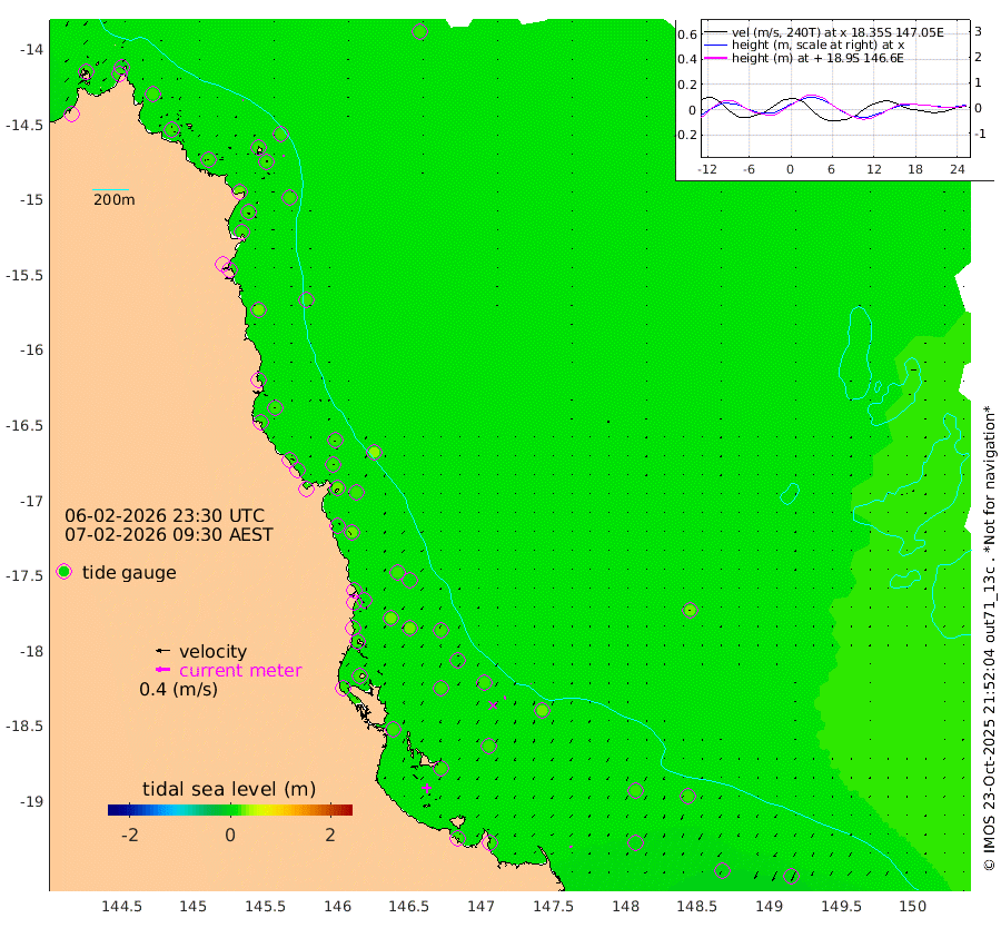 2cm/s -91T +11cm/s rms + 4cm/s -61T. GBRLSL 354m 4cm/s -153T +15cm/s rms + 2cm/s -84T. GBRLSH 32m 5cm/s -150T +15cm/s rms + 5cm/s -155T. GBRPPS 72m 2cm/s -140T +17cm/s rms + 13cm/s 115T. GBRMYR 223m 5cm/s -168T +18cm/s rms + 0cm/s -9T. NRSYON 29m 16cm Osprey Reef - West 19cm Stanley Island -7cm Pipon Islands 18cm Cape Melville 16cm Munro Reef 16cm Leggatt Island 17cm Normanby River 19cm Carter Reef 15cm Lizard Island (QLD) 22cm East Petherbridge Island 18cm North Direction Island 26cm Cape Flattery 20cm Ribbon Reef No.9 21cm Low Wooded Island 20cm Cape Bedford 6cm Endeavour River North 18cm Cooktown 19cm Cruiser Passage 24cm East Hope Island 8cm Bailay Creek 18cm Low Islets 17cm Port Douglas 18cm Palm Cove 13cm Yorkeys Knob 21cm Michaelmas Cay 30cm Euston Reef 18cm Cairns 20cm Green Island 25cm Fitzroy Island 22cm Sudbury Cay 14cm High Island 23cm Russell Island 18cm Peart Reef 14cm Nathan Reef 17cm Mourilyan Harbour 18cm Cowley Beach 11cm North Barnard Island 23cm Eddy Reef 23cm Beaver Reef 18cm Unnamed Reef No. 1 26cm Flinders Reef 18cm Clump Point 15cm Dunk Island 15cm Barnett Patches 16cm Goold Island 16cm Cardwell 16cm Britomart Reef 22cm Pith Reef 24cm Dip Reef 17cm Lucinda (Offshore) 19cm John Brewer Reef 20cm Albino Rock 19cm Shrimp Reef 17cm Jaguar Reef 17cm Townsville 16cm Cape Ferguson 4cm Stanley Reef 3cm Wallaby Reef 6cm Kennedy Reef