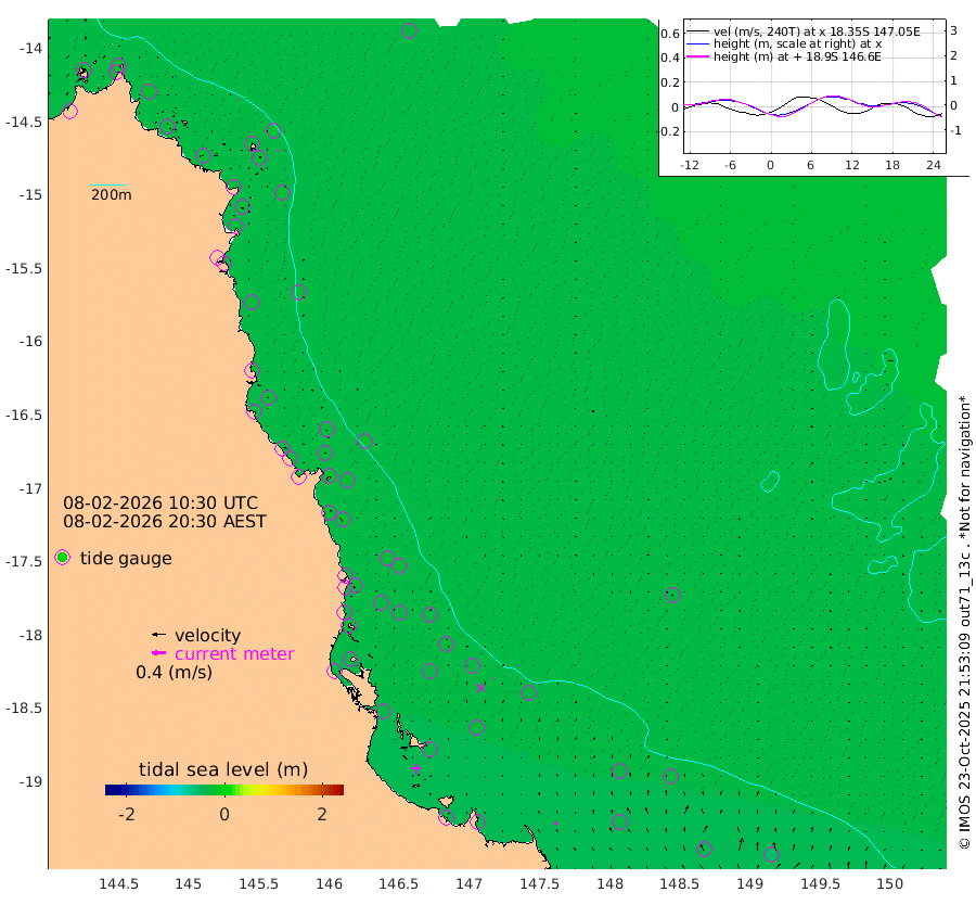 1cm/s 137T +11cm/s rms + 4cm/s -61T. GBRLSL 354m 4cm/s 9T +15cm/s rms + 2cm/s -84T. GBRLSH 32m 3cm/s 3T +15cm/s rms + 5cm/s -155T. GBRPPS 72m 2cm/s 23T +17cm/s rms + 13cm/s 115T. GBRMYR 223m 8cm/s -28T +18cm/s rms + 0cm/s -9T. NRSYON 29m -30cm Osprey Reef - West -20cm Stanley Island -21cm Pipon Islands -26cm Cape Melville -22cm Munro Reef -25cm Leggatt Island -19cm Normanby River -22cm Carter Reef -29cm Lizard Island (QLD) -23cm East Petherbridge Island -26cm North Direction Island -27cm Cape Flattery -27cm Ribbon Reef No.9 -30cm Low Wooded Island -25cm Cape Bedford -23cm Endeavour River North -28cm Cooktown -28cm Cruiser Passage -26cm East Hope Island -20cm Bailay Creek -25cm Low Islets -29cm Port Douglas -31cm Palm Cove -28cm Yorkeys Knob -24cm Michaelmas Cay -22cm Euston Reef -29cm Cairns -24cm Green Island -22cm Fitzroy Island -25cm Sudbury Cay -29cm High Island -18cm Russell Island -25cm Peart Reef -26cm Nathan Reef -31cm Mourilyan Harbour -29cm Cowley Beach -24cm North Barnard Island -35cm Eddy Reef -35cm Beaver Reef -32cm Unnamed Reef No. 1 -31cm Flinders Reef -31cm Clump Point -30cm Dunk Island -29cm Barnett Patches -34cm Goold Island -32cm Cardwell -31cm Britomart Reef -30cm Pith Reef -36cm Dip Reef -33cm Lucinda (Offshore) -25cm John Brewer Reef -33cm Albino Rock -33cm Shrimp Reef -34cm Jaguar Reef -34cm Townsville -35cm Cape Ferguson -37cm Stanley Reef -39cm Wallaby Reef -54cm Kennedy Reef