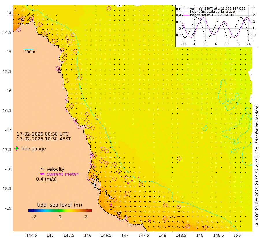 2cm/s -71T +11cm/s rms + 4cm/s -61T. GBRLSL 354m 8cm/s 33T +15cm/s rms + 2cm/s -84T. GBRLSH 32m 15cm/s 68T +15cm/s rms + 5cm/s -155T. GBRPPS 72m 5cm/s 59T +17cm/s rms + 13cm/s 115T. GBRMYR 223m 24cm/s 118T +18cm/s rms + 0cm/s -9T. NRSYON 29m 85cm Osprey Reef - West 107cm Stanley Island 75cm Pipon Islands 98cm Cape Melville 104cm Munro Reef 104cm Leggatt Island 118cm Normanby River 99cm Carter Reef 94cm Lizard Island (QLD) 108cm East Petherbridge Island 97cm North Direction Island 103cm Cape Flattery 92cm Ribbon Reef No.9 97cm Low Wooded Island 92cm Cape Bedford 56cm Endeavour River North 96cm Cooktown 87cm Cruiser Passage 93cm East Hope Island 96cm Bailay Creek 90cm Low Islets 97cm Port Douglas 93cm Palm Cove 89cm Yorkeys Knob 95cm Michaelmas Cay 84cm Euston Reef 100cm Cairns 85cm Green Island 89cm Fitzroy Island 94cm Sudbury Cay 84cm High Island 74cm Russell Island 89cm Peart Reef 84cm Nathan Reef 101cm Mourilyan Harbour 101cm Cowley Beach 108cm North Barnard Island 109cm Eddy Reef 132cm Beaver Reef 94cm Unnamed Reef No. 1 80cm Flinders Reef 105cm Clump Point 104cm Dunk Island 96cm Barnett Patches 109cm Goold Island 131cm Cardwell 94cm Britomart Reef 97cm Pith Reef 92cm Dip Reef 117cm Lucinda (Offshore) 104cm John Brewer Reef 116cm Albino Rock 103cm Shrimp Reef 90cm Jaguar Reef 121cm Townsville 114cm Cape Ferguson 118cm Stanley Reef 123cm Wallaby Reef 111cm Kennedy Reef