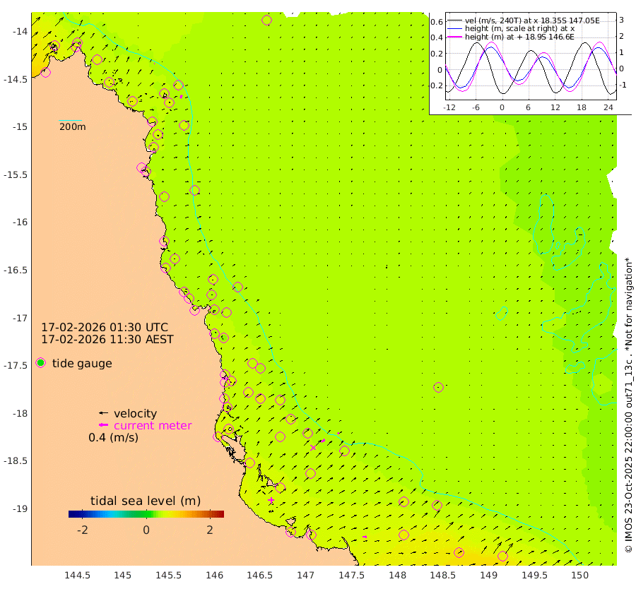 2cm/s -64T +11cm/s rms + 4cm/s -61T. GBRLSL 354m 14cm/s 23T +15cm/s rms + 2cm/s -84T. GBRLSH 32m 19cm/s 51T +15cm/s rms + 5cm/s -155T. GBRPPS 72m 8cm/s 42T +17cm/s rms + 13cm/s 115T. GBRMYR 223m 17cm/s 89T +18cm/s rms + 0cm/s -9T. NRSYON 29m 51cm Osprey Reef - West 66cm Stanley Island 44cm Pipon Islands 62cm Cape Melville 66cm Munro Reef 65cm Leggatt Island 72cm Normanby River 62cm Carter Reef 56cm Lizard Island (QLD) 69cm East Petherbridge Island 61cm North Direction Island 61cm Cape Flattery 55cm Ribbon Reef No.9 58cm Low Wooded Island 57cm Cape Bedford 36cm Endeavour River North 56cm Cooktown 51cm Cruiser Passage 50cm East Hope Island 65cm Bailay Creek 52cm Low Islets 56cm Port Douglas 51cm Palm Cove 48cm Yorkeys Knob 56cm Michaelmas Cay 43cm Euston Reef 58cm Cairns 43cm Green Island 43cm Fitzroy Island 51cm Sudbury Cay 44cm High Island 32cm Russell Island 46cm Peart Reef 45cm Nathan Reef 60cm Mourilyan Harbour 57cm Cowley Beach 67cm North Barnard Island 67cm Eddy Reef 78cm Beaver Reef 53cm Unnamed Reef No. 1 41cm Flinders Reef 59cm Clump Point 58cm Dunk Island 56cm Barnett Patches 61cm Goold Island 80cm Cardwell 47cm Britomart Reef 56cm Pith Reef 52cm Dip Reef 67cm Lucinda (Offshore) 58cm John Brewer Reef 64cm Albino Rock 60cm Shrimp Reef 50cm Jaguar Reef 68cm Townsville 64cm Cape Ferguson 82cm Stanley Reef 91cm Wallaby Reef 75cm Kennedy Reef