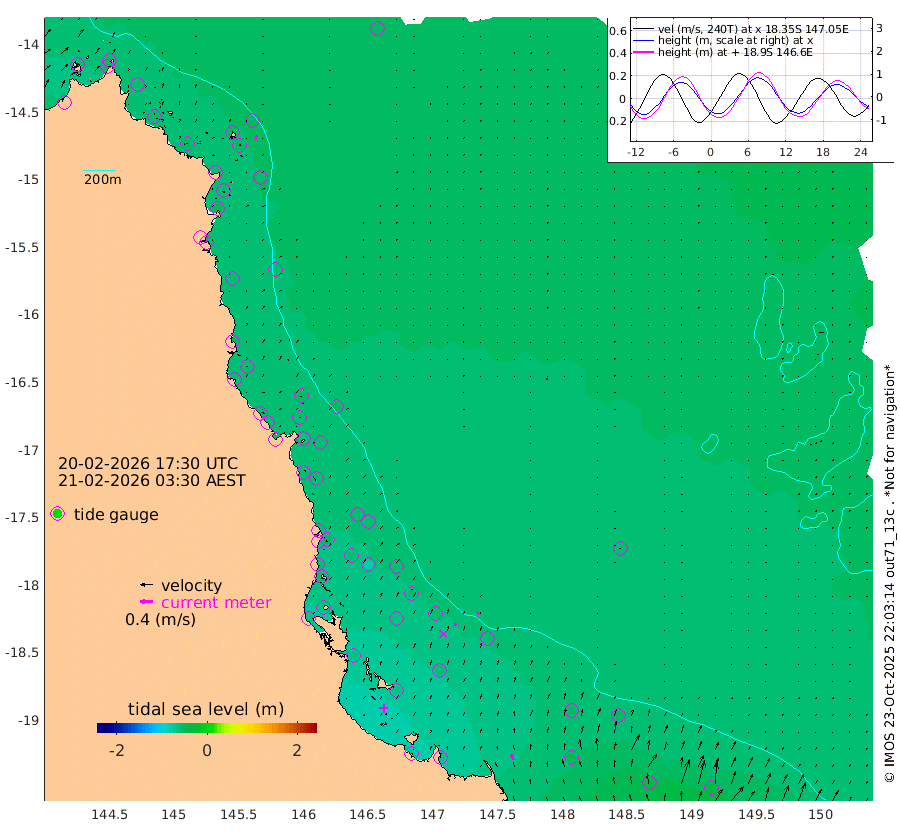 1cm/s 63T +11cm/s rms + 4cm/s -61T. GBRLSL 354m 12cm/s 13T +15cm/s rms + 2cm/s -84T. GBRLSH 32m 9cm/s 18T +15cm/s rms + 5cm/s -155T. GBRPPS 72m 5cm/s 29T +17cm/s rms + 13cm/s 115T. GBRMYR 223m 18cm/s -19T +18cm/s rms + 0cm/s -9T. NRSYON 29m -49cm Osprey Reef - West -54cm Stanley Island -46cm Pipon Islands -48cm Cape Melville -55cm Munro Reef -56cm Leggatt Island -66cm Normanby River -51cm Carter Reef -49cm Lizard Island (QLD) -50cm East Petherbridge Island -46cm North Direction Island -56cm Cape Flattery -55cm Ribbon Reef No.9 -59cm Low Wooded Island -42cm Cape Bedford -29cm Endeavour River North -53cm Cooktown -54cm Cruiser Passage -56cm East Hope Island -42cm Bailay Creek -53cm Low Islets -56cm Port Douglas -59cm Palm Cove -60cm Yorkeys Knob -50cm Michaelmas Cay -45cm Euston Reef -58cm Cairns -58cm Green Island -67cm Fitzroy Island -58cm Sudbury Cay -55cm High Island -55cm Russell Island -59cm Peart Reef -59cm Nathan Reef -56cm Mourilyan Harbour -55cm Cowley Beach -49cm North Barnard Island -59cm Eddy Reef -76cm Beaver Reef -57cm Unnamed Reef No. 1 -53cm Flinders Reef -59cm Clump Point -59cm Dunk Island -54cm Barnett Patches -63cm Goold Island -65cm Cardwell -63cm Britomart Reef -55cm Pith Reef -60cm Dip Reef -64cm Lucinda (Offshore) -58cm John Brewer Reef -67cm Albino Rock -49cm Shrimp Reef -47cm Jaguar Reef -68cm Townsville -63cm Cape Ferguson -38cm Stanley Reef -31cm Wallaby Reef -33cm Kennedy Reef