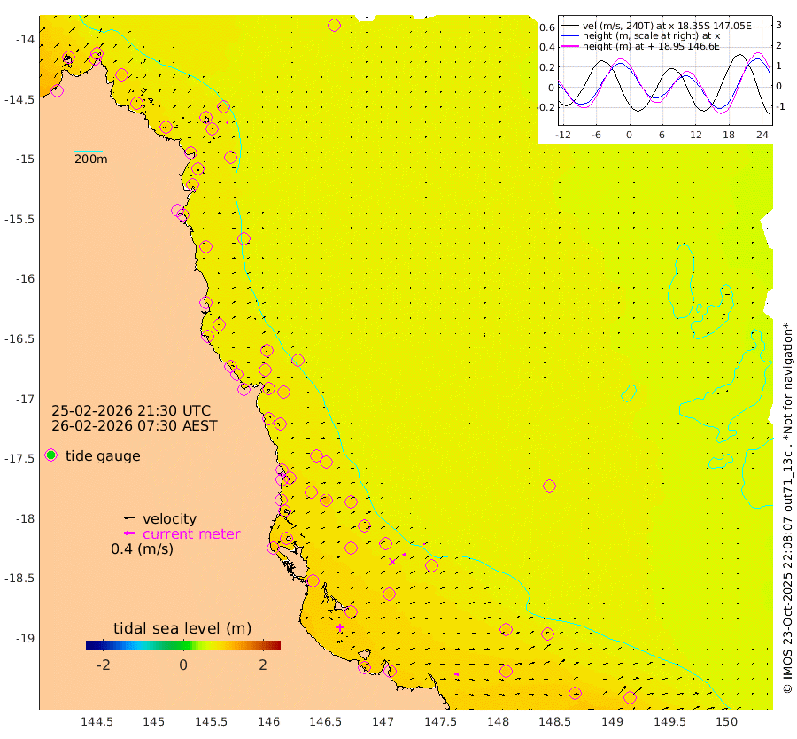 0cm/s 3T +11cm/s rms + 4cm/s -61T. GBRLSL 354m 6cm/s 51T +15cm/s rms + 2cm/s -84T. GBRLSH 32m 12cm/s 75T +15cm/s rms + 5cm/s -155T. GBRPPS 72m 5cm/s 70T +17cm/s rms + 13cm/s 115T. GBRMYR 223m 14cm/s 107T +18cm/s rms + 0cm/s -9T. NRSYON 29m 78cm Osprey Reef - West 106cm Stanley Island 63cm Pipon Islands 93cm Cape Melville 98cm Munro Reef 97cm Leggatt Island 107cm Normanby River 98cm Carter Reef 92cm Lizard Island (QLD) 102cm East Petherbridge Island 94cm North Direction Island 96cm Cape Flattery 85cm Ribbon Reef No.9 88cm Low Wooded Island 90cm Cape Bedford 49cm Endeavour River North 92cm Cooktown 81cm Cruiser Passage 94cm East Hope Island 89cm Bailay Creek 88cm Low Islets 93cm Port Douglas 90cm Palm Cove 90cm Yorkeys Knob 92cm Michaelmas Cay 81cm Euston Reef 95cm Cairns 88cm Green Island 85cm Fitzroy Island 91cm Sudbury Cay 88cm High Island 84cm Russell Island 94cm Peart Reef 86cm Nathan Reef 95cm Mourilyan Harbour 97cm Cowley Beach 103cm North Barnard Island 90cm Eddy Reef 124cm Beaver Reef 90cm Unnamed Reef No. 1 78cm Flinders Reef 99cm Clump Point 103cm Dunk Island 94cm Barnett Patches 106cm Goold Island 119cm Cardwell 96cm Britomart Reef 89cm Pith Reef 84cm Dip Reef 110cm Lucinda (Offshore) 109cm John Brewer Reef 104cm Albino Rock 98cm Shrimp Reef 84cm Jaguar Reef 114cm Townsville 108cm Cape Ferguson 112cm Stanley Reef 107cm Wallaby Reef 94cm Kennedy Reef