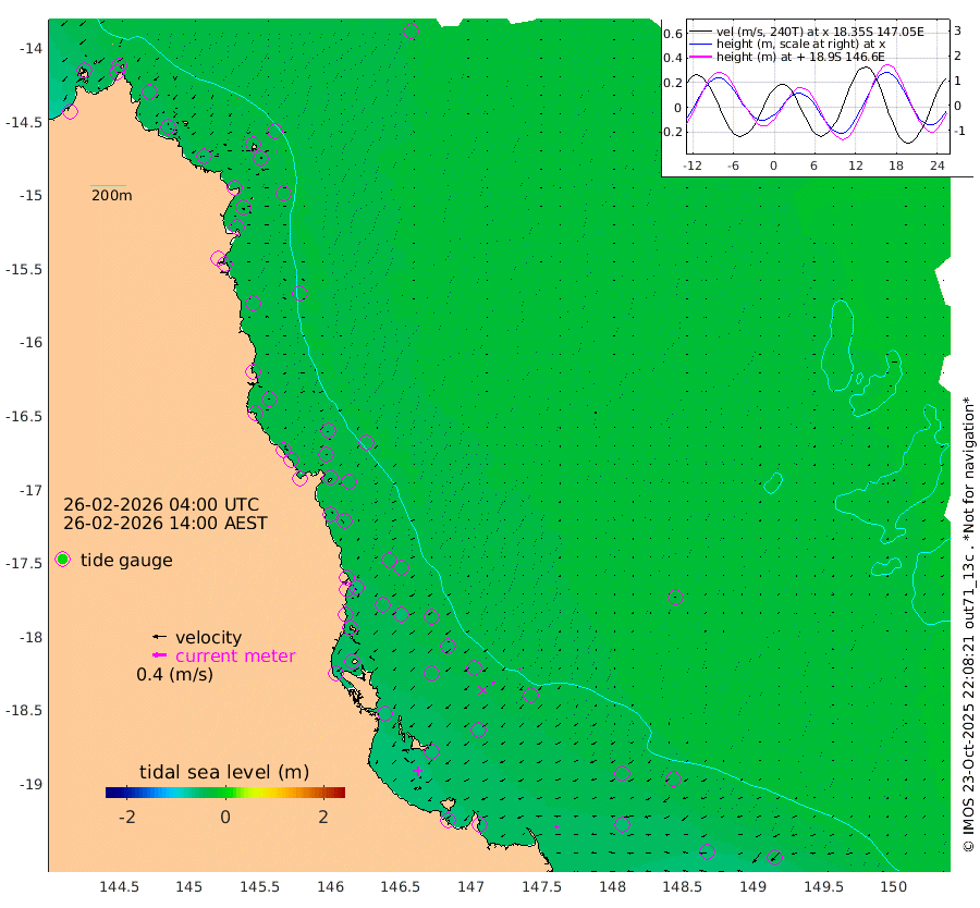 1cm/s -74T +11cm/s rms + 4cm/s -61T. GBRLSL 354m 2cm/s -87T +15cm/s rms + 2cm/s -84T. GBRLSH 32m 9cm/s -119T +15cm/s rms + 5cm/s -155T. GBRPPS 72m 4cm/s -119T +17cm/s rms + 13cm/s 115T. GBRMYR 223m 11cm/s -74T +18cm/s rms + 0cm/s -9T. NRSYON 29m -33cm Osprey Reef - West -56cm Stanley Island -34cm Pipon Islands -44cm Cape Melville -47cm Munro Reef -47cm Leggatt Island -63cm Normanby River -42cm Carter Reef -42cm Lizard Island (QLD) -51cm East Petherbridge Island -45cm North Direction Island -45cm Cape Flattery -37cm Ribbon Reef No.9 -32cm Low Wooded Island -42cm Cape Bedford -30cm Endeavour River North -42cm Cooktown -34cm Cruiser Passage -39cm East Hope Island -43cm Bailay Creek -39cm Low Islets -43cm Port Douglas -39cm Palm Cove -40cm Yorkeys Knob -45cm Michaelmas Cay -38cm Euston Reef -44cm Cairns -40cm Green Island -39cm Fitzroy Island -44cm Sudbury Cay -40cm High Island -42cm Russell Island -45cm Peart Reef -38cm Nathan Reef -44cm Mourilyan Harbour -48cm Cowley Beach -59cm North Barnard Island -39cm Eddy Reef -60cm Beaver Reef -40cm Unnamed Reef No. 1 -31cm Flinders Reef -47cm Clump Point -50cm Dunk Island -45cm Barnett Patches -51cm Goold Island -63cm Cardwell -42cm Britomart Reef -43cm Pith Reef -33cm Dip Reef -56cm Lucinda (Offshore) -53cm John Brewer Reef -54cm Albino Rock -45cm Shrimp Reef -39cm Jaguar Reef -59cm Townsville -55cm Cape Ferguson -56cm Stanley Reef -58cm Wallaby Reef -43cm Kennedy Reef