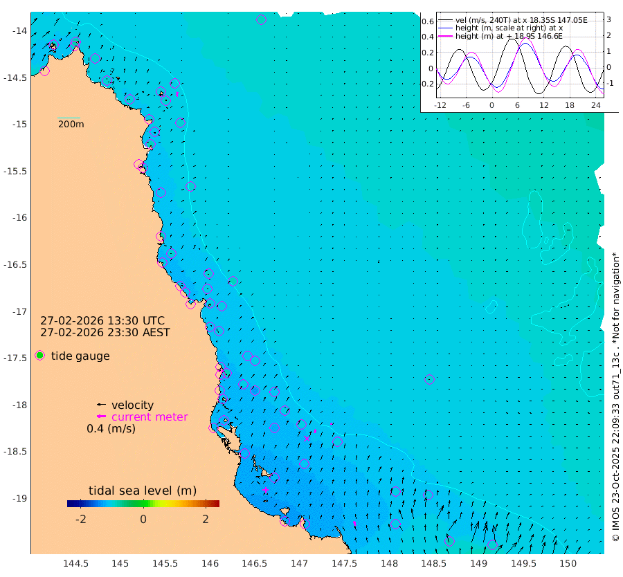0cm/s 89T +11cm/s rms + 4cm/s -61T. GBRLSL 354m 20cm/s 9T +15cm/s rms + 2cm/s -84T. GBRLSH 32m 17cm/s 17T +15cm/s rms + 5cm/s -155T. GBRPPS 72m 9cm/s 24T +17cm/s rms + 13cm/s 115T. GBRMYR 223m 21cm/s -12T +18cm/s rms + 0cm/s -9T. NRSYON 29m -89cm Osprey Reef - West -96cm Stanley Island -80cm Pipon Islands -90cm Cape Melville -95cm Munro Reef -96cm Leggatt Island -97cm Normanby River -98cm Carter Reef -98cm Lizard Island (QLD) -93cm East Petherbridge Island -93cm North Direction Island -98cm Cape Flattery -94cm Ribbon Reef No.9 -106cm Low Wooded Island -89cm Cape Bedford -48cm Endeavour River North -99cm Cooktown -95cm Cruiser Passage -107cm East Hope Island -84cm Bailay Creek -96cm Low Islets -103cm Port Douglas -108cm Palm Cove -107cm Yorkeys Knob -91cm Michaelmas Cay -90cm Euston Reef -105cm Cairns -104cm Green Island -103cm Fitzroy Island -100cm Sudbury Cay -106cm High Island -98cm Russell Island -106cm Peart Reef -104cm Nathan Reef -104cm Mourilyan Harbour -105cm Cowley Beach -89cm North Barnard Island -100cm Eddy Reef -132cm Beaver Reef -106cm Unnamed Reef No. 1 -96cm Flinders Reef -110cm Clump Point -111cm Dunk Island -103cm Barnett Patches -119cm Goold Island -114cm Cardwell -121cm Britomart Reef -99cm Pith Reef -104cm Dip Reef -116cm Lucinda (Offshore) -108cm John Brewer Reef -116cm Albino Rock -105cm Shrimp Reef -99cm Jaguar Reef -124cm Townsville -120cm Cape Ferguson -99cm Stanley Reef -83cm Wallaby Reef -97cm Kennedy Reef