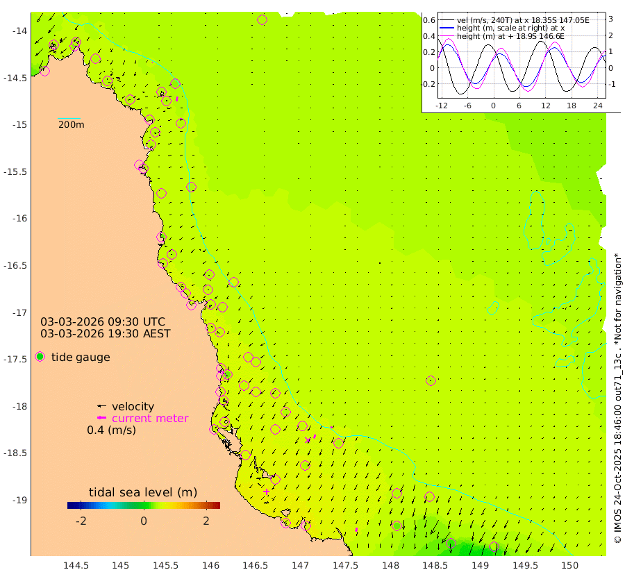 3cm/s 128T +11cm/s rms + 4cm/s -61T. GBRLSL 354m 21cm/s -167T +15cm/s rms + 2cm/s -84T. GBRLSH 32m 17cm/s -149T +15cm/s rms + 5cm/s -155T. GBRPPS 72m 8cm/s -151T +17cm/s rms + 13cm/s 115T. GBRMYR 223m 17cm/s -176T +18cm/s rms + 0cm/s -9T. NRSYON 29m 41cm Osprey Reef - West 41cm Stanley Island 41cm Pipon Islands 37cm Cape Melville 40cm Munro Reef 41cm Leggatt Island 44cm Normanby River 34cm Carter Reef 38cm Lizard Island (QLD) 43cm East Petherbridge Island 41cm North Direction Island 43cm Cape Flattery 40cm Ribbon Reef No.9 42cm Low Wooded Island 40cm Cape Bedford 21cm Endeavour River North 42cm Cooktown 41cm Cruiser Passage 46cm East Hope Island 29cm Bailay Creek 42cm Low Islets 46cm Port Douglas 49cm Palm Cove 46cm Yorkeys Knob 40cm Michaelmas Cay 55cm Euston Reef 48cm Cairns 49cm Green Island 47cm Fitzroy Island 46cm Sudbury Cay 47cm High Island 52cm Russell Island 46cm Peart Reef 45cm Nathan Reef 45cm Mourilyan Harbour 50cm Cowley Beach 26cm North Barnard Island 49cm Eddy Reef 56cm Beaver Reef 48cm Unnamed Reef No. 1 43cm Flinders Reef 50cm Clump Point 45cm Dunk Island 42cm Barnett Patches 53cm Goold Island 51cm Cardwell 55cm Britomart Reef 47cm Pith Reef 45cm Dip Reef 54cm Lucinda (Offshore) 38cm John Brewer Reef 60cm Albino Rock 39cm Shrimp Reef 46cm Jaguar Reef 60cm Townsville 56cm Cape Ferguson 24cm Stanley Reef 17cm Wallaby Reef 39cm Kennedy Reef