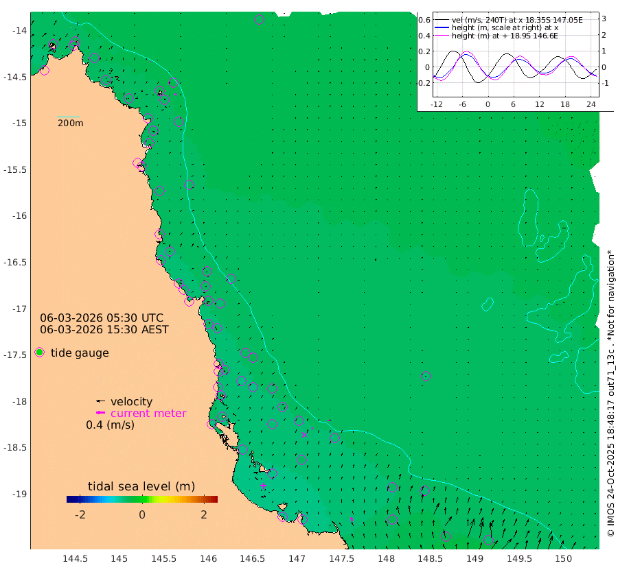 1cm/s -40T +11cm/s rms + 4cm/s -61T. GBRLSL 354m 9cm/s 11T +15cm/s rms + 2cm/s -84T. GBRLSH 32m 8cm/s 13T +15cm/s rms + 5cm/s -155T. GBRPPS 72m 4cm/s 25T +17cm/s rms + 13cm/s 115T. GBRMYR 223m 18cm/s -21T +18cm/s rms + 0cm/s -9T. NRSYON 29m -49cm Osprey Reef - West -49cm Stanley Island -32cm Pipon Islands -46cm Cape Melville -46cm Munro Reef -49cm Leggatt Island -54cm Normanby River -42cm Carter Reef -44cm Lizard Island (QLD) -51cm East Petherbridge Island -46cm North Direction Island -55cm Cape Flattery -49cm Ribbon Reef No.9 -48cm Low Wooded Island -46cm Cape Bedford -32cm Endeavour River North -49cm Cooktown -48cm Cruiser Passage -49cm East Hope Island -33cm Bailay Creek -46cm Low Islets -52cm Port Douglas -52cm Palm Cove -46cm Yorkeys Knob -50cm Michaelmas Cay -59cm Euston Reef -53cm Cairns -50cm Green Island -52cm Fitzroy Island -54cm Sudbury Cay -47cm High Island -50cm Russell Island -48cm Peart Reef -45cm Nathan Reef -52cm Mourilyan Harbour -54cm Cowley Beach -41cm North Barnard Island -62cm Eddy Reef -66cm Beaver Reef -53cm Unnamed Reef No. 1 -53cm Flinders Reef -56cm Clump Point -53cm Dunk Island -46cm Barnett Patches -58cm Goold Island -63cm Cardwell -54cm Britomart Reef -55cm Pith Reef -56cm Dip Reef -61cm Lucinda (Offshore) -46cm John Brewer Reef -66cm Albino Rock -49cm Shrimp Reef -53cm Jaguar Reef -65cm Townsville -62cm Cape Ferguson -39cm Stanley Reef -39cm Wallaby Reef -56cm Kennedy Reef