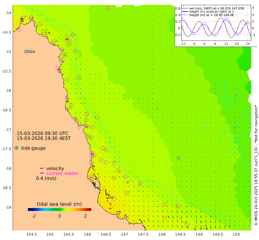 2cm/s 117T +11cm/s rms + 4cm/s -61T. GBRLSL 354m 2cm/s 155T +15cm/s rms + 2cm/s -84T. GBRLSH 32m 5cm/s 114T +15cm/s rms + 5cm/s -155T. GBRPPS 72m 3cm/s 141T +17cm/s rms + 13cm/s 115T. GBRMYR 223m 16cm/s 140T +18cm/s rms + 0cm/s -9T. NRSYON 29m 34cm Osprey Reef - West 52cm Stanley Island 46cm Pipon Islands 41cm Cape Melville 44cm Munro Reef 45cm Leggatt Island 61cm Normanby River 32cm Carter Reef 38cm Lizard Island (QLD) 52cm East Petherbridge Island 45cm North Direction Island 45cm Cape Flattery 35cm Ribbon Reef No.9 37cm Low Wooded Island 45cm Cape Bedford 27cm Endeavour River North 41cm Cooktown 33cm Cruiser Passage 38cm East Hope Island 41cm Bailay Creek 40cm Low Islets 44cm Port Douglas 41cm Palm Cove 37cm Yorkeys Knob 41cm Michaelmas Cay 45cm Euston Reef 46cm Cairns 38cm Green Island 34cm Fitzroy Island 40cm Sudbury Cay 39cm High Island 42cm Russell Island 41cm Peart Reef 35cm Nathan Reef 45cm Mourilyan Harbour 51cm Cowley Beach 46cm North Barnard Island 46cm Eddy Reef 58cm Beaver Reef 40cm Unnamed Reef No. 1 26cm Flinders Reef 50cm Clump Point 48cm Dunk Island 40cm Barnett Patches 54cm Goold Island 67cm Cardwell 44cm Britomart Reef 42cm Pith Reef 30cm Dip Reef 60cm Lucinda (Offshore) 45cm John Brewer Reef 62cm Albino Rock 40cm Shrimp Reef 39cm Jaguar Reef 65cm Townsville 59cm Cape Ferguson 47cm Stanley Reef 45cm Wallaby Reef 51cm Kennedy Reef