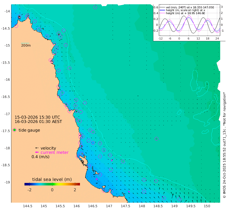 1cm/s -60T +11cm/s rms + 4cm/s -61T. GBRLSL 354m 4cm/s -27T +15cm/s rms + 2cm/s -84T. GBRLSH 32m 7cm/s -60T +15cm/s rms + 5cm/s -155T. GBRPPS 72m 2cm/s -38T +17cm/s rms + 13cm/s 115T. GBRMYR 223m 20cm/s -42T +18cm/s rms + 0cm/s -9T. NRSYON 29m -78cm Osprey Reef - West -102cm Stanley Island -76cm Pipon Islands -89cm Cape Melville -96cm Munro Reef -95cm Leggatt Island -109cm Normanby River -92cm Carter Reef -87cm Lizard Island (QLD) -105cm East Petherbridge Island -95cm North Direction Island -96cm Cape Flattery -84cm Ribbon Reef No.9 -94cm Low Wooded Island -92cm Cape Bedford -46cm Endeavour River North -91cm Cooktown -81cm Cruiser Passage -94cm East Hope Island -94cm Bailay Creek -88cm Low Islets -94cm Port Douglas -92cm Palm Cove -86cm Yorkeys Knob -88cm Michaelmas Cay -92cm Euston Reef -97cm Cairns -86cm Green Island -82cm Fitzroy Island -88cm Sudbury Cay -85cm High Island -83cm Russell Island -88cm Peart Reef -82cm Nathan Reef -96cm Mourilyan Harbour -100cm Cowley Beach -92cm North Barnard Island -99cm Eddy Reef -125cm Beaver Reef -89cm Unnamed Reef No. 1 -72cm Flinders Reef -101cm Clump Point -100cm Dunk Island -91cm Barnett Patches -107cm Goold Island -122cm Cardwell -97cm Britomart Reef -91cm Pith Reef -81cm Dip Reef -113cm Lucinda (Offshore) -97cm John Brewer Reef -113cm Albino Rock -96cm Shrimp Reef -86cm Jaguar Reef -119cm Townsville -112cm Cape Ferguson -101cm Stanley Reef -94cm Wallaby Reef -94cm Kennedy Reef