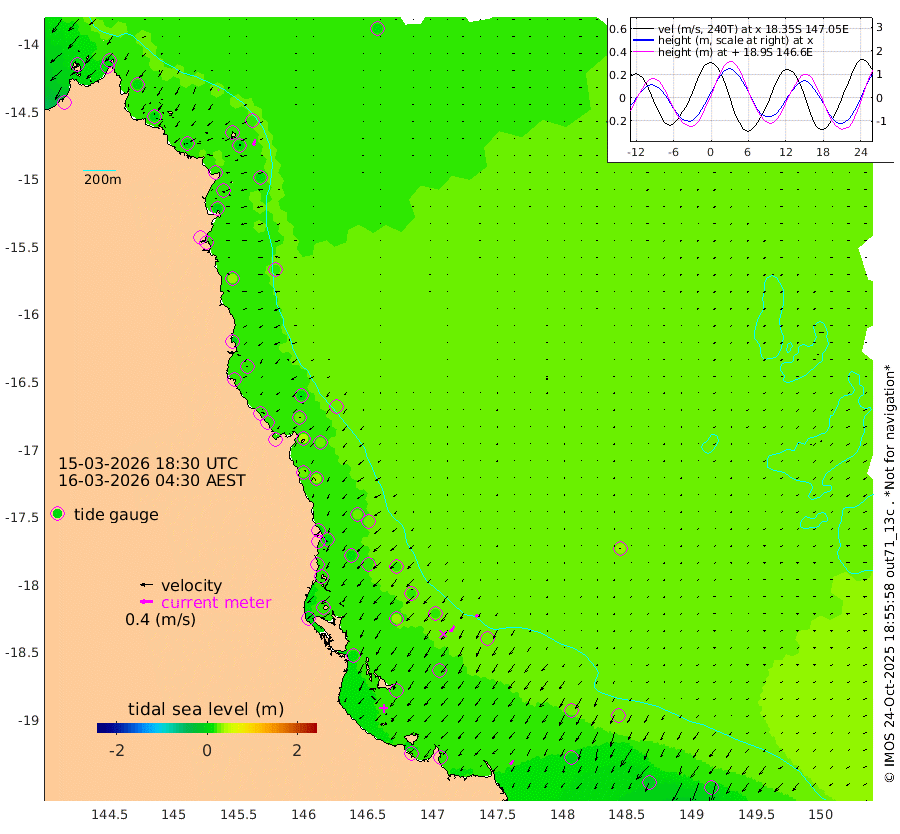 1cm/s -75T +11cm/s rms + 4cm/s -61T. GBRLSL 354m 20cm/s -161T +15cm/s rms + 2cm/s -84T. GBRLSH 32m 22cm/s -141T +15cm/s rms + 5cm/s -155T. GBRPPS 72m 10cm/s -143T +17cm/s rms + 13cm/s 115T. GBRMYR 223m 15cm/s -144T +18cm/s rms + 0cm/s -9T. NRSYON 29m 11cm Osprey Reef - West 5cm Stanley Island 4cm Pipon Islands 10cm Cape Melville 7cm Munro Reef 5cm Leggatt Island -1cm Normanby River 15cm Carter Reef 17cm Lizard Island (QLD) 2cm East Petherbridge Island 8cm North Direction Island 16cm Cape Flattery 13cm Ribbon Reef No.9 15cm Low Wooded Island 7cm Cape Bedford -2cm Endeavour River North 16cm Cooktown 17cm Cruiser Passage 31cm East Hope Island -1cm Bailay Creek 16cm Low Islets 16cm Port Douglas 21cm Palm Cove 21cm Yorkeys Knob 13cm Michaelmas Cay 25cm Euston Reef 16cm Cairns 27cm Green Island 39cm Fitzroy Island 23cm Sudbury Cay 26cm High Island 30cm Russell Island 24cm Peart Reef 24cm Nathan Reef 15cm Mourilyan Harbour 18cm Cowley Beach 8cm North Barnard Island 9cm Eddy Reef 19cm Beaver Reef 20cm Unnamed Reef No. 1 32cm Flinders Reef 17cm Clump Point 18cm Dunk Island 20cm Barnett Patches 19cm Goold Island 3cm Cardwell 31cm Britomart Reef 22cm Pith Reef 24cm Dip Reef 14cm Lucinda (Offshore) 22cm John Brewer Reef 16cm Albino Rock 25cm Shrimp Reef 25cm Jaguar Reef 17cm Townsville 19cm Cape Ferguson -2cm Stanley Reef -9cm Wallaby Reef 2cm Kennedy Reef