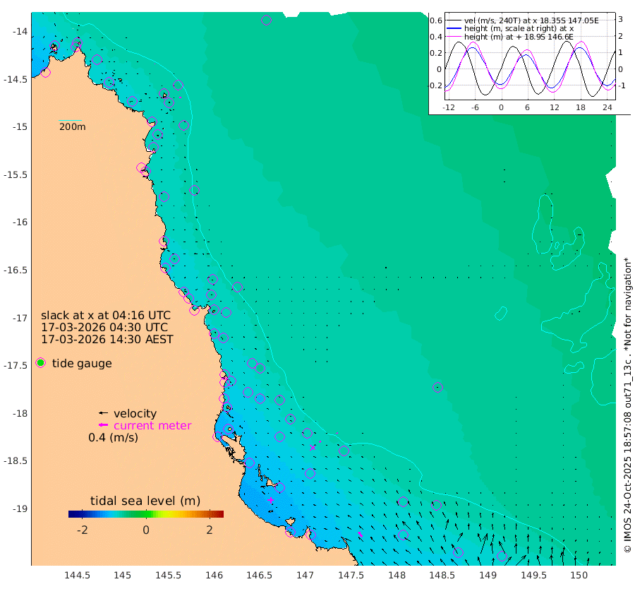 0cm/s 32T +11cm/s rms + 4cm/s -61T. GBRLSL 354m 5cm/s 1T +15cm/s rms + 2cm/s -84T. GBRLSH 32m 7cm/s -51T +15cm/s rms + 5cm/s -155T. GBRPPS 72m 3cm/s -22T +17cm/s rms + 13cm/s 115T. GBRMYR 223m 27cm/s -37T +18cm/s rms + 0cm/s -9T. NRSYON 29m -71cm Osprey Reef - West -92cm Stanley Island -70cm Pipon Islands -81cm Cape Melville -84cm Munro Reef -86cm Leggatt Island -108cm Normanby River -73cm Carter Reef -79cm Lizard Island (QLD) -90cm East Petherbridge Island -80cm North Direction Island -90cm Cape Flattery -77cm Ribbon Reef No.9 -79cm Low Wooded Island -78cm Cape Bedford -54cm Endeavour River North -82cm Cooktown -73cm Cruiser Passage -80cm East Hope Island -73cm Bailay Creek -78cm Low Islets -85cm Port Douglas -83cm Palm Cove -79cm Yorkeys Knob -82cm Michaelmas Cay -77cm Euston Reef -89cm Cairns -78cm Green Island -82cm Fitzroy Island -84cm Sudbury Cay -79cm High Island -78cm Russell Island -83cm Peart Reef -75cm Nathan Reef -87cm Mourilyan Harbour -92cm Cowley Beach -95cm North Barnard Island -90cm Eddy Reef -115cm Beaver Reef -82cm Unnamed Reef No. 1 -71cm Flinders Reef -94cm Clump Point -96cm Dunk Island -83cm Barnett Patches -101cm Goold Island -117cm Cardwell -88cm Britomart Reef -85cm Pith Reef -78cm Dip Reef -108cm Lucinda (Offshore) -93cm John Brewer Reef -110cm Albino Rock -86cm Shrimp Reef -80cm Jaguar Reef -115cm Townsville -107cm Cape Ferguson -92cm Stanley Reef -91cm Wallaby Reef -93cm Kennedy Reef