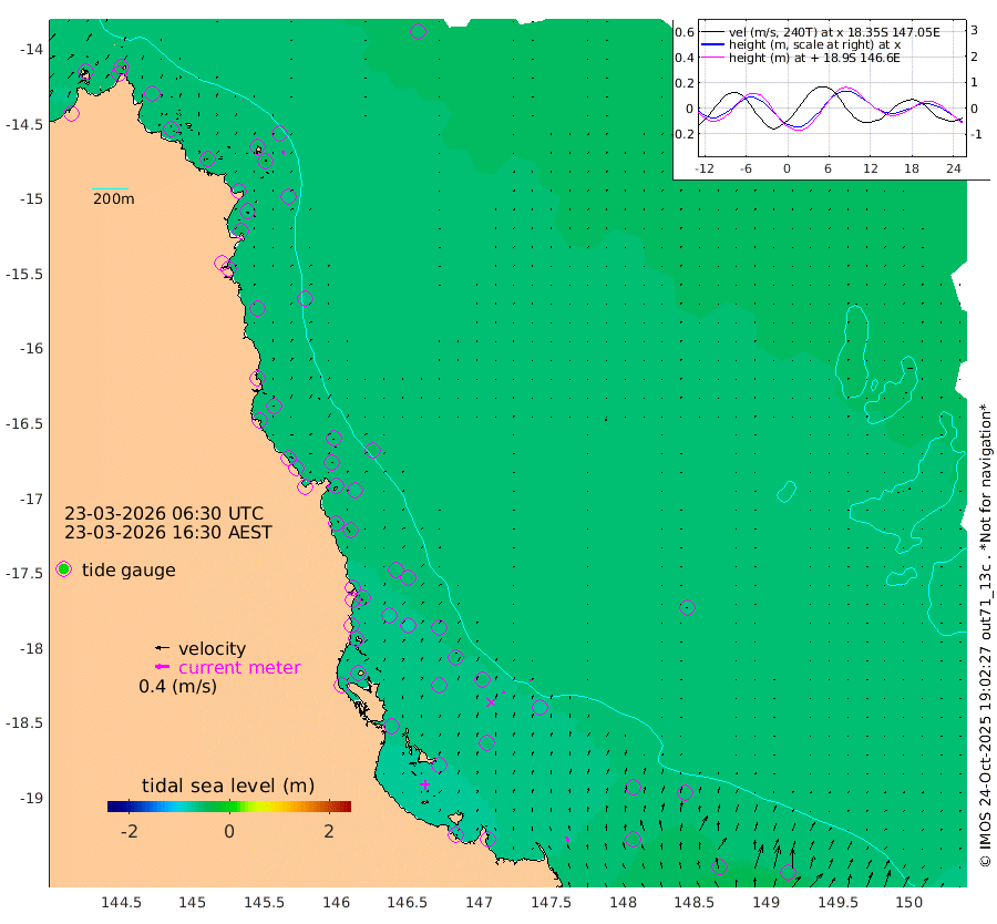1cm/s 67T +11cm/s rms + 4cm/s -61T. GBRLSL 354m 11cm/s 8T +15cm/s rms + 2cm/s -84T. GBRLSH 32m 7cm/s 9T +15cm/s rms + 5cm/s -155T. GBRPPS 72m 4cm/s 40T +17cm/s rms + 13cm/s 115T. GBRMYR 223m 16cm/s -23T +18cm/s rms + 0cm/s -9T. NRSYON 29m -59cm Osprey Reef - West -53cm Stanley Island -38cm Pipon Islands -51cm Cape Melville -57cm Munro Reef -60cm Leggatt Island -58cm Normanby River -59cm Carter Reef -53cm Lizard Island (QLD) -51cm East Petherbridge Island -48cm North Direction Island -61cm Cape Flattery -62cm Ribbon Reef No.9 -66cm Low Wooded Island -48cm Cape Bedford -33cm Endeavour River North -57cm Cooktown -61cm Cruiser Passage -57cm East Hope Island -44cm Bailay Creek -54cm Low Islets -60cm Port Douglas -63cm Palm Cove -61cm Yorkeys Knob -57cm Michaelmas Cay -52cm Euston Reef -62cm Cairns -59cm Green Island -62cm Fitzroy Island -62cm Sudbury Cay -57cm High Island -52cm Russell Island -58cm Peart Reef -58cm Nathan Reef -61cm Mourilyan Harbour -57cm Cowley Beach -49cm North Barnard Island -69cm Eddy Reef -79cm Beaver Reef -63cm Unnamed Reef No. 1 -63cm Flinders Reef -64cm Clump Point -65cm Dunk Island -55cm Barnett Patches -67cm Goold Island -67cm Cardwell -66cm Britomart Reef -59cm Pith Reef -71cm Dip Reef -67cm Lucinda (Offshore) -57cm John Brewer Reef -69cm Albino Rock -56cm Shrimp Reef -57cm Jaguar Reef -69cm Townsville -66cm Cape Ferguson -51cm Stanley Reef -46cm Wallaby Reef -56cm Kennedy Reef