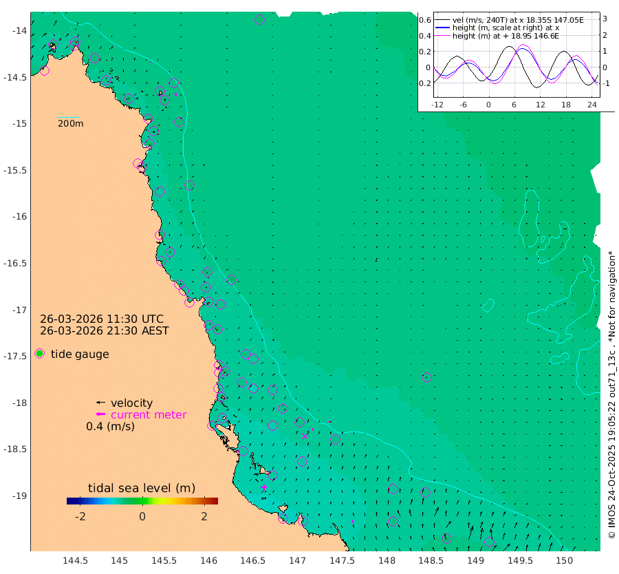 0cm/s 154T +11cm/s rms + 4cm/s -61T. GBRLSL 354m 13cm/s 7T +15cm/s rms + 2cm/s -84T. GBRLSH 32m 11cm/s 16T +15cm/s rms + 5cm/s -155T. GBRPPS 72m 6cm/s 26T +17cm/s rms + 13cm/s 115T. GBRMYR 223m 13cm/s -12T +18cm/s rms + 0cm/s -9T. NRSYON 29m -56cm Osprey Reef - West -57cm Stanley Island -58cm Pipon Islands -59cm Cape Melville -59cm Munro Reef -61cm Leggatt Island -56cm Normanby River -65cm Carter Reef -64cm Lizard Island (QLD) -54cm East Petherbridge Island -56cm North Direction Island -60cm Cape Flattery -58cm Ribbon Reef No.9 -67cm Low Wooded Island -53cm Cape Bedford -26cm Endeavour River North -63cm Cooktown -59cm Cruiser Passage -70cm East Hope Island -52cm Bailay Creek -61cm Low Islets -66cm Port Douglas -70cm Palm Cove -70cm Yorkeys Knob -56cm Michaelmas Cay -52cm Euston Reef -67cm Cairns -65cm Green Island -70cm Fitzroy Island -63cm Sudbury Cay -71cm High Island -59cm Russell Island -67cm Peart Reef -68cm Nathan Reef -67cm Mourilyan Harbour -65cm Cowley Beach -59cm North Barnard Island -63cm Eddy Reef -83cm Beaver Reef -68cm Unnamed Reef No. 1 -61cm Flinders Reef -70cm Clump Point -72cm Dunk Island -65cm Barnett Patches -76cm Goold Island -71cm Cardwell -79cm Britomart Reef -63cm Pith Reef -67cm Dip Reef -73cm Lucinda (Offshore) -71cm John Brewer Reef -71cm Albino Rock -69cm Shrimp Reef -64cm Jaguar Reef -78cm Townsville -76cm Cape Ferguson -67cm Stanley Reef -56cm Wallaby Reef -69cm Kennedy Reef