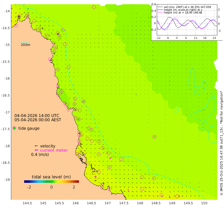 0cm/s 58T +11cm/s rms + 4cm/s -61T. GBRLSL 354m 4cm/s 36T +15cm/s rms + 2cm/s -84T. GBRLSH 32m 8cm/s 63T +15cm/s rms + 5cm/s -155T. GBRPPS 72m 1cm/s 63T +17cm/s rms + 13cm/s 115T. GBRMYR 223m 14cm/s 121T +18cm/s rms + 0cm/s -9T. NRSYON 29m 44cm Osprey Reef - West 39cm Stanley Island 38cm Pipon Islands 38cm Cape Melville 41cm Munro Reef 44cm Leggatt Island 45cm Normanby River 34cm Carter Reef 40cm Lizard Island (QLD) 38cm East Petherbridge Island 37cm North Direction Island 38cm Cape Flattery 42cm Ribbon Reef No.9 42cm Low Wooded Island 35cm Cape Bedford 40cm Endeavour River North 40cm Cooktown 40cm Cruiser Passage 31cm East Hope Island 39cm Bailay Creek 35cm Low Islets 42cm Port Douglas 42cm Palm Cove 41cm Yorkeys Knob 39cm Michaelmas Cay 29cm Euston Reef 43cm Cairns 35cm Green Island 29cm Fitzroy Island 39cm Sudbury Cay 39cm High Island 25cm Russell Island 35cm Peart Reef 36cm Nathan Reef 45cm Mourilyan Harbour 42cm Cowley Beach 45cm North Barnard Island 52cm Eddy Reef 56cm Beaver Reef 45cm Unnamed Reef No. 1 34cm Flinders Reef 46cm Clump Point 46cm Dunk Island 42cm Barnett Patches 50cm Goold Island 57cm Cardwell 40cm Britomart Reef 42cm Pith Reef 45cm Dip Reef 51cm Lucinda (Offshore) 35cm John Brewer Reef 53cm Albino Rock 42cm Shrimp Reef 45cm Jaguar Reef 53cm Townsville 51cm Cape Ferguson 59cm Stanley Reef 64cm Wallaby Reef 69cm Kennedy Reef