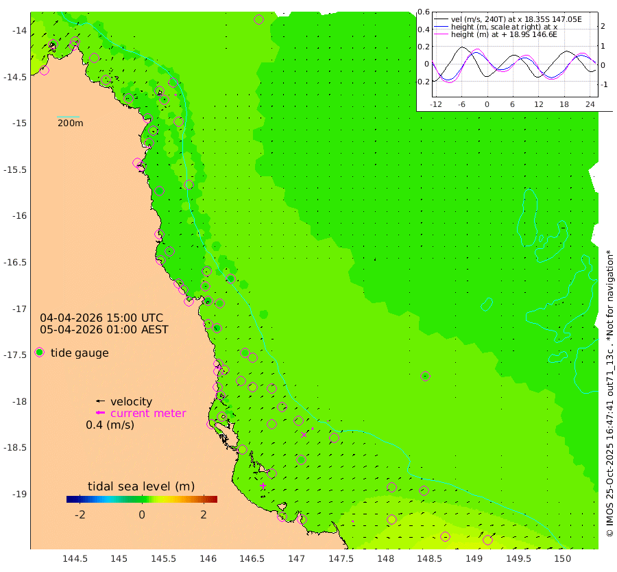 0cm/s -7T +11cm/s rms + 4cm/s -61T. GBRLSL 354m 6cm/s 29T +15cm/s rms + 2cm/s -84T. GBRLSH 32m 9cm/s 49T +15cm/s rms + 5cm/s -155T. GBRPPS 72m 3cm/s 47T +17cm/s rms + 13cm/s 115T. GBRMYR 223m 8cm/s 90T +18cm/s rms + 0cm/s -9T. NRSYON 29m 29cm Osprey Reef - West 22cm Stanley Island 25cm Pipon Islands 24cm Cape Melville 25cm Munro Reef 28cm Leggatt Island 25cm Normanby River 21cm Carter Reef 26cm Lizard Island (QLD) 20cm East Petherbridge Island 22cm North Direction Island 20cm Cape Flattery 25cm Ribbon Reef No.9 26cm Low Wooded Island 20cm Cape Bedford 29cm Endeavour River North 24cm Cooktown 25cm Cruiser Passage 15cm East Hope Island 25cm Bailay Creek 20cm Low Islets 25cm Port Douglas 25cm Palm Cove 27cm Yorkeys Knob 24cm Michaelmas Cay 9cm Euston Reef 26cm Cairns 20cm Green Island 12cm Fitzroy Island 22cm Sudbury Cay 26cm High Island 11cm Russell Island 21cm Peart Reef 23cm Nathan Reef 28cm Mourilyan Harbour 24cm Cowley Beach 32cm North Barnard Island 29cm Eddy Reef 32cm Beaver Reef 28cm Unnamed Reef No. 1 19cm Flinders Reef 28cm Clump Point 30cm Dunk Island 27cm Barnett Patches 31cm Goold Island 34cm Cardwell 23cm Britomart Reef 24cm Pith Reef 28cm Dip Reef 31cm Lucinda (Offshore) 22cm John Brewer Reef 29cm Albino Rock 26cm Shrimp Reef 27cm Jaguar Reef 31cm Townsville 31cm Cape Ferguson 47cm Stanley Reef 50cm Wallaby Reef 52cm Kennedy Reef