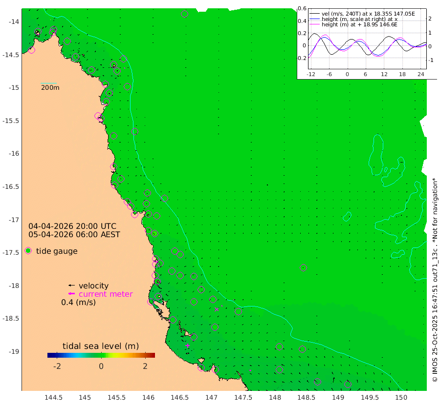 0cm/s -72T +11cm/s rms + 4cm/s -61T. GBRLSL 354m 2cm/s -131T +15cm/s rms + 2cm/s -84T. GBRLSH 32m 5cm/s -139T +15cm/s rms + 5cm/s -155T. GBRPPS 72m 1cm/s -155T +17cm/s rms + 13cm/s 115T. GBRMYR 223m 10cm/s -52T +18cm/s rms + 0cm/s -9T. NRSYON 29m -2cm Osprey Reef - West 3cm Stanley Island -19cm Pipon Islands 2cm Cape Melville 0cm Munro Reef -1cm Leggatt Island -5cm Normanby River 5cm Carter Reef 3cm Lizard Island (QLD) 1cm East Petherbridge Island 2cm North Direction Island 4cm Cape Flattery 1cm Ribbon Reef No.9 3cm Low Wooded Island 4cm Cape Bedford -6cm Endeavour River North 3cm Cooktown 2cm Cruiser Passage 10cm East Hope Island -4cm Bailay Creek 6cm Low Islets 1cm Port Douglas 2cm Palm Cove 4cm Yorkeys Knob 3cm Michaelmas Cay 5cm Euston Reef 0cm Cairns 7cm Green Island 8cm Fitzroy Island 4cm Sudbury Cay 7cm High Island 15cm Russell Island 10cm Peart Reef 6cm Nathan Reef -1cm Mourilyan Harbour -1cm Cowley Beach -1cm North Barnard Island -9cm Eddy Reef 0cm Beaver Reef 0cm Unnamed Reef No. 1 8cm Flinders Reef -2cm Clump Point 0cm Dunk Island 2cm Barnett Patches -2cm Goold Island -9cm Cardwell 4cm Britomart Reef 0cm Pith Reef 2cm Dip Reef -5cm Lucinda (Offshore) 10cm John Brewer Reef -9cm Albino Rock 1cm Shrimp Reef -5cm Jaguar Reef -6cm Townsville -5cm Cape Ferguson -10cm Stanley Reef -19cm Wallaby Reef -20cm Kennedy Reef
