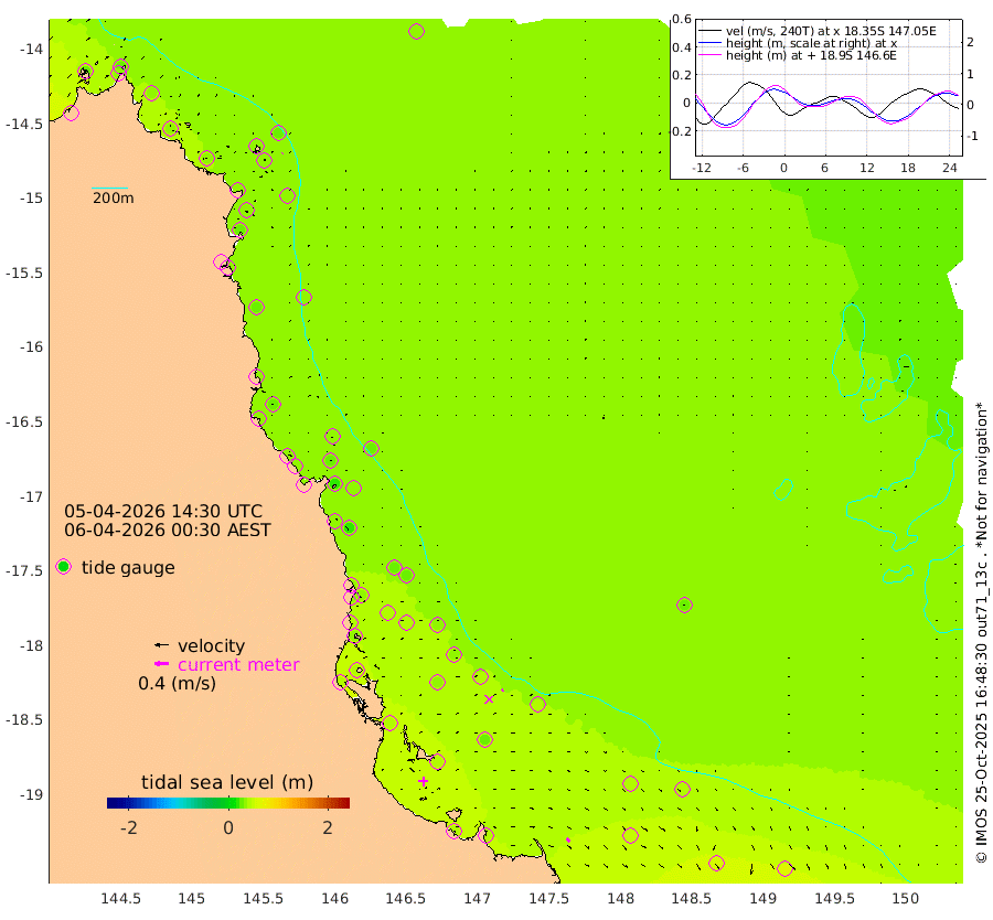 0cm/s -11T +11cm/s rms + 4cm/s -61T. GBRLSL 354m 2cm/s 50T +15cm/s rms + 2cm/s -84T. GBRLSH 32m 5cm/s 70T +15cm/s rms + 5cm/s -155T. GBRPPS 72m 0cm/s 75T +17cm/s rms + 13cm/s 115T. GBRMYR 223m 12cm/s 128T +18cm/s rms + 0cm/s -9T. NRSYON 29m 37cm Osprey Reef - West 29cm Stanley Island 28cm Pipon Islands 31cm Cape Melville 32cm Munro Reef 34cm Leggatt Island 32cm Normanby River 28cm Carter Reef 33cm Lizard Island (QLD) 31cm East Petherbridge Island 31cm North Direction Island 31cm Cape Flattery 34cm Ribbon Reef No.9 37cm Low Wooded Island 30cm Cape Bedford 34cm Endeavour River North 32cm Cooktown 34cm Cruiser Passage 28cm East Hope Island 34cm Bailay Creek 28cm Low Islets 34cm Port Douglas 34cm Palm Cove 32cm Yorkeys Knob 33cm Michaelmas Cay 29cm Euston Reef 35cm Cairns 29cm Green Island 22cm Fitzroy Island 32cm Sudbury Cay 32cm High Island 20cm Russell Island 26cm Peart Reef 28cm Nathan Reef 37cm Mourilyan Harbour 35cm Cowley Beach 35cm North Barnard Island 44cm Eddy Reef 45cm Beaver Reef 37cm Unnamed Reef No. 1 30cm Flinders Reef 38cm Clump Point 37cm Dunk Island 35cm Barnett Patches 40cm Goold Island 44cm Cardwell 32cm Britomart Reef 38cm Pith Reef 38cm Dip Reef 41cm Lucinda (Offshore) 25cm John Brewer Reef 44cm Albino Rock 38cm Shrimp Reef 41cm Jaguar Reef 42cm Townsville 42cm Cape Ferguson 50cm Stanley Reef 55cm Wallaby Reef 61cm Kennedy Reef