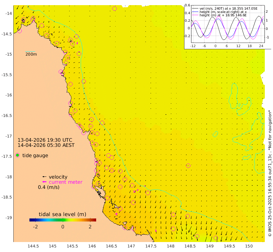 1cm/s -81T +11cm/s rms + 4cm/s -61T. GBRLSL 354m 22cm/s -167T +15cm/s rms + 2cm/s -84T. GBRLSH 32m 16cm/s -159T +15cm/s rms + 5cm/s -155T. GBRPPS 72m 8cm/s -156T +17cm/s rms + 13cm/s 115T. GBRMYR 223m 21cm/s 169T +18cm/s rms + 0cm/s -9T. NRSYON 29m 68cm Osprey Reef - West 81cm Stanley Island 62cm Pipon Islands 77cm Cape Melville 79cm Munro Reef 77cm Leggatt Island 86cm Normanby River 80cm Carter Reef 81cm Lizard Island (QLD) 79cm East Petherbridge Island 76cm North Direction Island 86cm Cape Flattery 76cm Ribbon Reef No.9 85cm Low Wooded Island 73cm Cape Bedford 38cm Endeavour River North 82cm Cooktown 77cm Cruiser Passage 95cm East Hope Island 68cm Bailay Creek 81cm Low Islets 85cm Port Douglas 87cm Palm Cove 85cm Yorkeys Knob 78cm Michaelmas Cay 82cm Euston Reef 87cm Cairns 87cm Green Island 98cm Fitzroy Island 87cm Sudbury Cay 88cm High Island 87cm Russell Island 89cm Peart Reef 84cm Nathan Reef 85cm Mourilyan Harbour 90cm Cowley Beach 82cm North Barnard Island 82cm Eddy Reef 112cm Beaver Reef 84cm Unnamed Reef No. 1 83cm Flinders Reef 91cm Clump Point 92cm Dunk Island 87cm Barnett Patches 97cm Goold Island 96cm Cardwell 99cm Britomart Reef 87cm Pith Reef 84cm Dip Reef 97cm Lucinda (Offshore) 95cm John Brewer Reef 99cm Albino Rock 91cm Shrimp Reef 83cm Jaguar Reef 104cm Townsville 100cm Cape Ferguson 76cm Stanley Reef 66cm Wallaby Reef 72cm Kennedy Reef