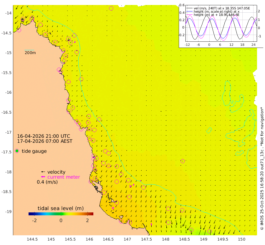 1cm/s -116T +11cm/s rms + 4cm/s -61T. GBRLSL 354m 20cm/s -165T +15cm/s rms + 2cm/s -84T. GBRLSH 32m 16cm/s -158T +15cm/s rms + 5cm/s -155T. GBRPPS 72m 8cm/s -156T +17cm/s rms + 13cm/s 115T. GBRMYR 223m 22cm/s 169T +18cm/s rms + 0cm/s -9T. NRSYON 29m 63cm Osprey Reef - West 70cm Stanley Island 55cm Pipon Islands 62cm Cape Melville 67cm Munro Reef 69cm Leggatt Island 83cm Normanby River 63cm Carter Reef 67cm Lizard Island (QLD) 68cm East Petherbridge Island 63cm North Direction Island 74cm Cape Flattery 69cm Ribbon Reef No.9 81cm Low Wooded Island 61cm Cape Bedford 41cm Endeavour River North 71cm Cooktown 70cm Cruiser Passage 75cm East Hope Island 57cm Bailay Creek 70cm Low Islets 74cm Port Douglas 78cm Palm Cove 77cm Yorkeys Knob 66cm Michaelmas Cay 63cm Euston Reef 76cm Cairns 76cm Green Island 79cm Fitzroy Island 74cm Sudbury Cay 76cm High Island 78cm Russell Island 80cm Peart Reef 75cm Nathan Reef 73cm Mourilyan Harbour 77cm Cowley Beach 66cm North Barnard Island 73cm Eddy Reef 99cm Beaver Reef 74cm Unnamed Reef No. 1 71cm Flinders Reef 80cm Clump Point 83cm Dunk Island 74cm Barnett Patches 86cm Goold Island 85cm Cardwell 87cm Britomart Reef 71cm Pith Reef 76cm Dip Reef 86cm Lucinda (Offshore) 80cm John Brewer Reef 88cm Albino Rock 70cm Shrimp Reef 65cm Jaguar Reef 92cm Townsville 87cm Cape Ferguson 59cm Stanley Reef 42cm Wallaby Reef 52cm Kennedy Reef