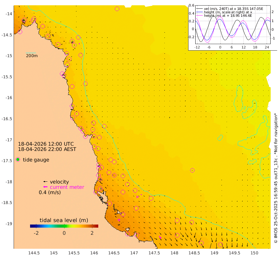 0cm/s 170T +11cm/s rms + 4cm/s -61T. GBRLSL 354m 9cm/s 165T +15cm/s rms + 2cm/s -84T. GBRLSH 32m 7cm/s 117T +15cm/s rms + 5cm/s -155T. GBRPPS 72m 2cm/s 159T +17cm/s rms + 13cm/s 115T. GBRMYR 223m 30cm/s 140T +18cm/s rms + 0cm/s -9T. NRSYON 29m 89cm Osprey Reef - West 103cm Stanley Island 87cm Pipon Islands 93cm Cape Melville 106cm Munro Reef 105cm Leggatt Island 115cm Normanby River 101cm Carter Reef 96cm Lizard Island (QLD) 95cm East Petherbridge Island 88cm North Direction Island 105cm Cape Flattery 98cm Ribbon Reef No.9 98cm Low Wooded Island 84cm Cape Bedford 55cm Endeavour River North 99cm Cooktown 94cm Cruiser Passage 99cm East Hope Island 87cm Bailay Creek 92cm Low Islets 103cm Port Douglas 103cm Palm Cove 100cm Yorkeys Knob 96cm Michaelmas Cay 83cm Euston Reef 107cm Cairns 96cm Green Island 107cm Fitzroy Island 101cm Sudbury Cay 96cm High Island 84cm Russell Island 99cm Peart Reef 96cm Nathan Reef 107cm Mourilyan Harbour 105cm Cowley Beach 108cm North Barnard Island 110cm Eddy Reef 138cm Beaver Reef 102cm Unnamed Reef No. 1 91cm Flinders Reef 112cm Clump Point 117cm Dunk Island 97cm Barnett Patches 120cm Goold Island 133cm Cardwell 110cm Britomart Reef 98cm Pith Reef 101cm Dip Reef 124cm Lucinda (Offshore) 111cm John Brewer Reef 126cm Albino Rock 104cm Shrimp Reef 100cm Jaguar Reef 131cm Townsville 124cm Cape Ferguson 110cm Stanley Reef 112cm Wallaby Reef 111cm Kennedy Reef