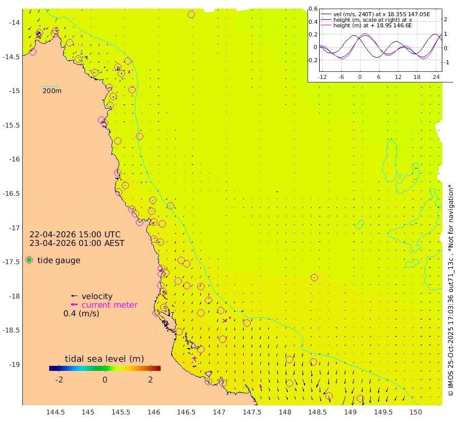 2cm/s -73T +11cm/s rms + 4cm/s -61T. GBRLSL 354m 16cm/s -170T +15cm/s rms + 2cm/s -84T. GBRLSH 32m 11cm/s -159T +15cm/s rms + 5cm/s -155T. GBRPPS 72m 6cm/s -144T +17cm/s rms + 13cm/s 115T. GBRMYR 223m 20cm/s 162T +18cm/s rms + 0cm/s -9T. NRSYON 29m 60cm Osprey Reef - West 51cm Stanley Island 50cm Pipon Islands 53cm Cape Melville 56cm Munro Reef 58cm Leggatt Island 56cm Normanby River 56cm Carter Reef 60cm Lizard Island (QLD) 46cm East Petherbridge Island 49cm North Direction Island 58cm Cape Flattery 61cm Ribbon Reef No.9 66cm Low Wooded Island 45cm Cape Bedford 43cm Endeavour River North 60cm Cooktown 63cm Cruiser Passage 62cm East Hope Island 48cm Bailay Creek 55cm Low Islets 62cm Port Douglas 66cm Palm Cove 67cm Yorkeys Knob 57cm Michaelmas Cay 49cm Euston Reef 63cm Cairns 64cm Green Island 69cm Fitzroy Island 64cm Sudbury Cay 68cm High Island 55cm Russell Island 62cm Peart Reef 64cm Nathan Reef 64cm Mourilyan Harbour 62cm Cowley Beach 61cm North Barnard Island 66cm Eddy Reef 81cm Beaver Reef 68cm Unnamed Reef No. 1 64cm Flinders Reef 67cm Clump Point 69cm Dunk Island 66cm Barnett Patches 72cm Goold Island 68cm Cardwell 72cm Britomart Reef 66cm Pith Reef 73cm Dip Reef 70cm Lucinda (Offshore) 62cm John Brewer Reef 73cm Albino Rock 67cm Shrimp Reef 67cm Jaguar Reef 73cm Townsville 73cm Cape Ferguson 65cm Stanley Reef 62cm Wallaby Reef 71cm Kennedy Reef