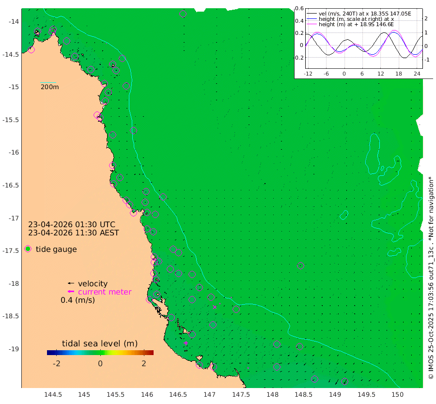 1cm/s 126T +11cm/s rms + 4cm/s -61T. GBRLSL 354m 1cm/s -66T +15cm/s rms + 2cm/s -84T. GBRLSH 32m 5cm/s -106T +15cm/s rms + 5cm/s -155T. GBRPPS 72m 3cm/s -111T +17cm/s rms + 13cm/s 115T. GBRMYR 223m 6cm/s -78T +18cm/s rms + 0cm/s -9T. NRSYON 29m -27cm Osprey Reef - West -44cm Stanley Island -21cm Pipon Islands -36cm Cape Melville -39cm Munro Reef -35cm Leggatt Island -46cm Normanby River -36cm Carter Reef -38cm Lizard Island (QLD) -42cm East Petherbridge Island -39cm North Direction Island -37cm Cape Flattery -33cm Ribbon Reef No.9 -34cm Low Wooded Island -37cm Cape Bedford -26cm Endeavour River North -36cm Cooktown -33cm Cruiser Passage -38cm East Hope Island -40cm Bailay Creek -34cm Low Islets -36cm Port Douglas -34cm Palm Cove -36cm Yorkeys Knob -38cm Michaelmas Cay -33cm Euston Reef -36cm Cairns -37cm Green Island -32cm Fitzroy Island -35cm Sudbury Cay -37cm High Island -39cm Russell Island -40cm Peart Reef -34cm Nathan Reef -36cm Mourilyan Harbour -41cm Cowley Beach -49cm North Barnard Island -28cm Eddy Reef -49cm Beaver Reef -34cm Unnamed Reef No. 1 -30cm Flinders Reef -39cm Clump Point -43cm Dunk Island -42cm Barnett Patches -43cm Goold Island -47cm Cardwell -38cm Britomart Reef -37cm Pith Reef -30cm Dip Reef -43cm Lucinda (Offshore) -47cm John Brewer Reef -40cm Albino Rock -42cm Shrimp Reef -35cm Jaguar Reef -46cm Townsville -45cm Cape Ferguson -50cm Stanley Reef -50cm Wallaby Reef -35cm Kennedy Reef