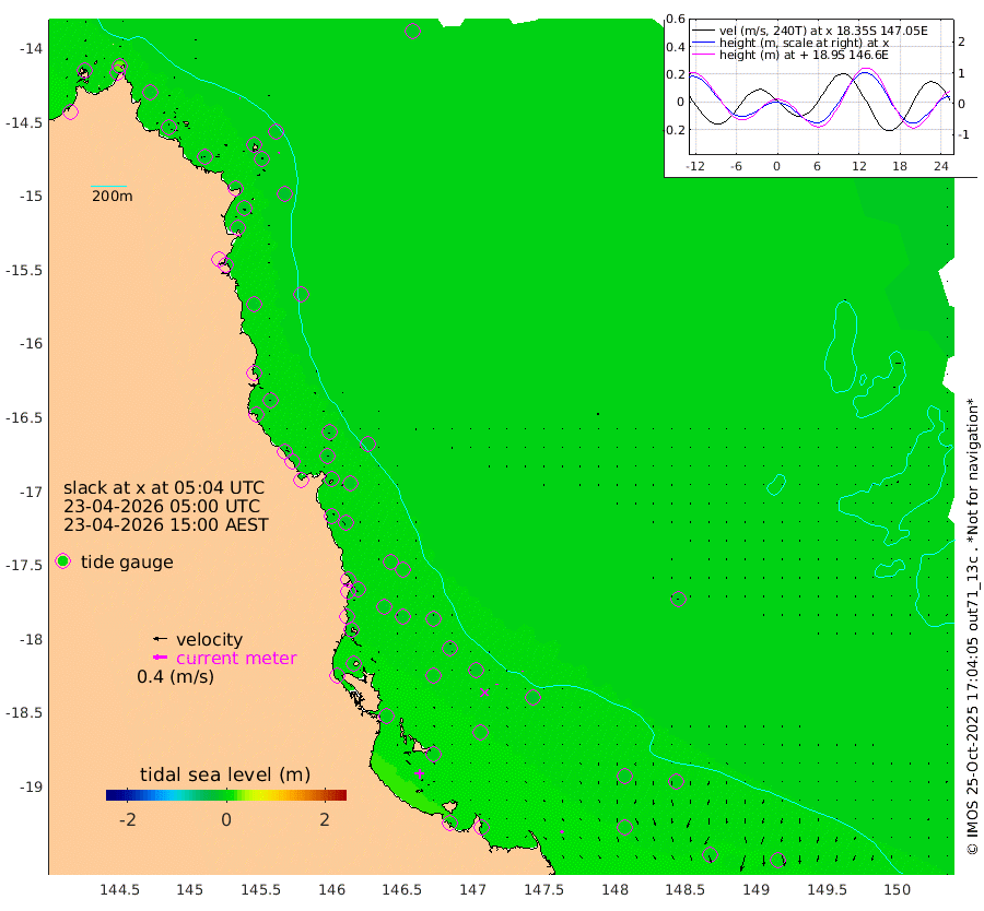 1cm/s 92T +11cm/s rms + 4cm/s -61T. GBRLSL 354m 3cm/s -159T +15cm/s rms + 2cm/s -84T. GBRLSH 32m 2cm/s -174T +15cm/s rms + 5cm/s -155T. GBRPPS 72m 2cm/s -177T +17cm/s rms + 13cm/s 115T. GBRMYR 223m 7cm/s 156T +18cm/s rms + 0cm/s -9T. NRSYON 29m -12cm Osprey Reef - West -9cm Stanley Island 24cm Pipon Islands -6cm Cape Melville -11cm Munro Reef -7cm Leggatt Island -4cm Normanby River -10cm Carter Reef -8cm Lizard Island (QLD) -14cm East Petherbridge Island -12cm North Direction Island -10cm Cape Flattery -15cm Ribbon Reef No.9 -14cm Low Wooded Island -11cm Cape Bedford -14cm Endeavour River North -8cm Cooktown -15cm Cruiser Passage -10cm East Hope Island -10cm Bailay Creek -9cm Low Islets -6cm Port Douglas -6cm Palm Cove -6cm Yorkeys Knob -11cm Michaelmas Cay -15cm Euston Reef -6cm Cairns -9cm Green Island -2cm Fitzroy Island -10cm Sudbury Cay -2cm High Island -8cm Russell Island -6cm Peart Reef -5cm Nathan Reef -6cm Mourilyan Harbour -5cm Cowley Beach 0cm North Barnard Island -13cm Eddy Reef -11cm Beaver Reef -9cm Unnamed Reef No. 1 -15cm Flinders Reef -4cm Clump Point -1cm Dunk Island -11cm Barnett Patches -1cm Goold Island 1cm Cardwell 0cm Britomart Reef -12cm Pith Reef -16cm Dip Reef -1cm Lucinda (Offshore) 0cm John Brewer Reef -4cm Albino Rock -8cm Shrimp Reef -7cm Jaguar Reef 3cm Townsville 1cm Cape Ferguson -2cm Stanley Reef -6cm Wallaby Reef 2cm Kennedy Reef